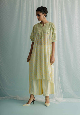 Lilac embellished printed peplum jacket-style top paired with flared pants