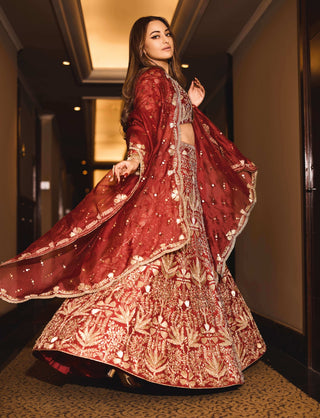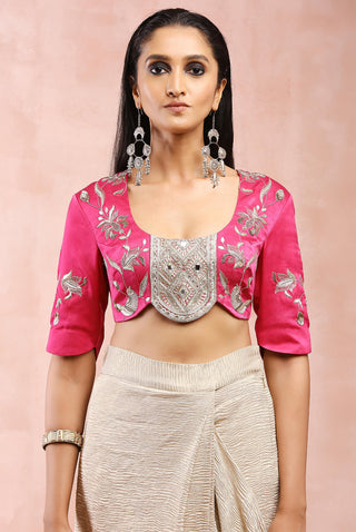 Hot pink tonal blouse and pleated lehenga set - Hot pink tonal blouse - Sanya Gulati - Available at Mrs. G