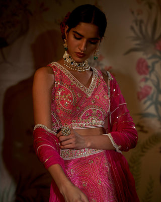 Rani pink tiered lehenga set