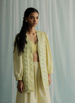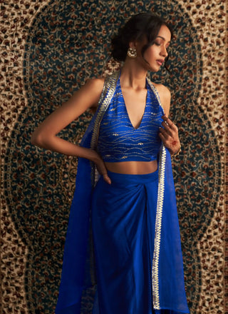 This collection offers a blend of traditional Indian wear with contemporary flair. These outfits feature a stylish cape or jacket paired with a lehenga or sharara, often embellished with intricate embroidery or detailed prints. Perfect for weddings and festive occasions, these sets combine elegance with modern sophistication.