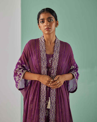 This collection offers a blend of traditional Indian wear with contemporary flair. These outfits feature a stylish cape or jacket paired with a lehenga or sharara, often embellished with intricate embroidery or detailed prints. Perfect for weddings and festive occasions, these sets combine elegance with modern sophistication.