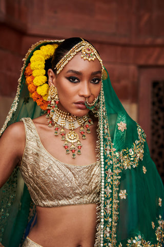 Green pushp lampi naach lehenga set