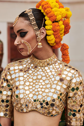 Gold padmasvara lampi naach lehenga set