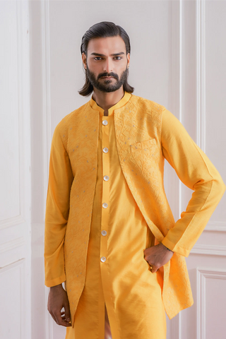 Discover timeless charm with our Kurta Bandi Sets, crafted for festive occasions and family celebrations. Each look pairs a Nehru jacket with a coordinating kurta and trousers, offering a polished yet comfortable ensemble. Ideal for mehendi ceremonies, festive dinners, and traditional events. Explore more from our Kurta Sets for Men and Traditional Wear for Men.