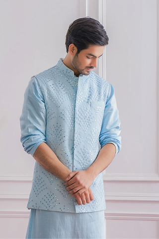 Bandi sets feature a sleeveless, waist-length jacket paired with a kurta and bottoms, offering a sharp, stylish look perfect for semi-formal occasions. These versatile outfits provide a refined yet relaxed option for events where a smart, put-together appearance is desired.