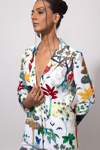 Mashru bib for Contemporary Wear – Ivory Phoenix by Aroka
