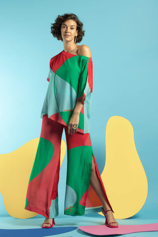 Multicolor boxy top with slit pant
