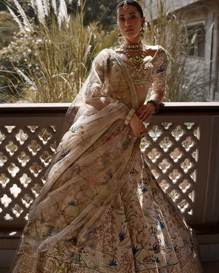 Ivory masai landscape aurum aged ekru lost in time lehenga