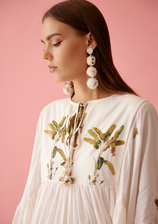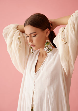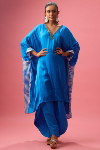 Blue solid kaftan with stripe pleated detailing paired with pants