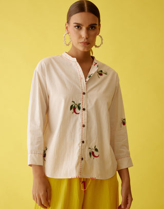 Blue printed handwork kurta with churidar paired with skinny scarf