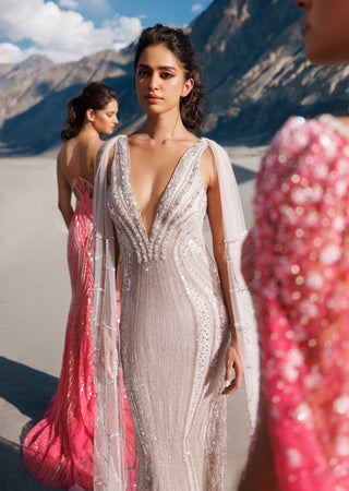 The Showstopper Collection brings you striking gowns for women, from sleek evening gowns for women to breathtaking bridal gowns. Whether you're drawn to floral wedding gowns or prefer classic wedding gown styles, each piece is designed to turn heads. Explore designer gowns for women that make a bold statement at any event. For a modern twist, discover western jumpsuits for women, perfect for adding versatility to your wardrobe. Shop the latest wedding dresses for women and step into any occasion with confidence.