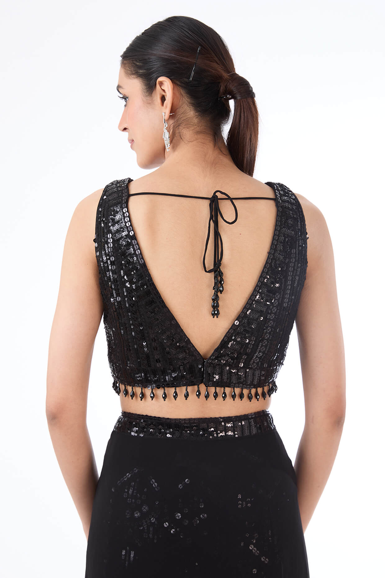 Ideal for formal events, weddings, and special occasions, the adha lehenga saree set offers a sophisticated and refined look. The detailed sequin embellishments create a striking contrast against the deep black, ensuring you make a memorable impression with timeless style and opulence.