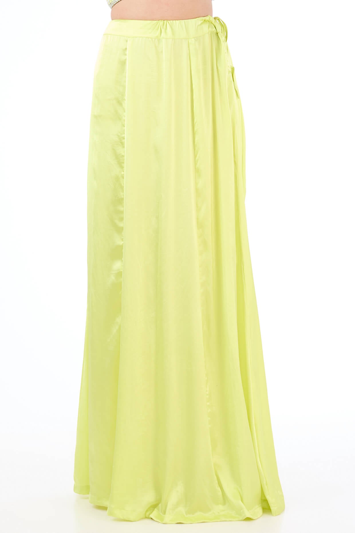 Perfect for festive occasions and special events, the adha lehenga saree set offers a striking blend of traditional elegance and contemporary flair. The neon yellow fabric and detailed embellishments ensure a memorable and radiant look, making this set ideal for those who want to stand out with confidence and style.