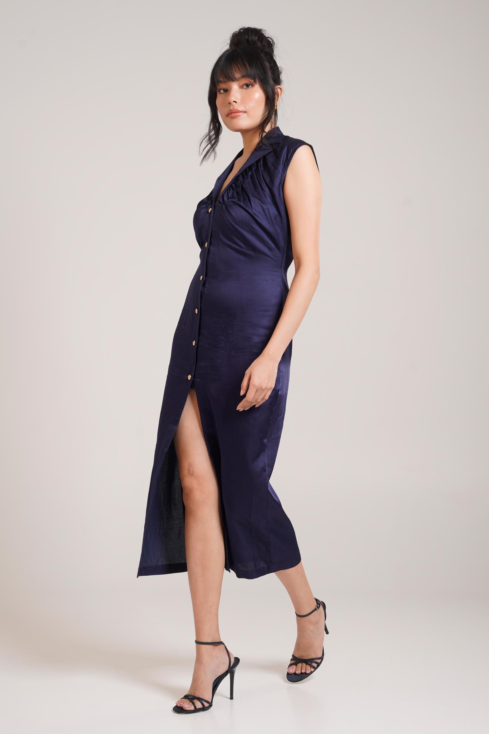 Advait’s Blue Chaya Ren Formal Dress is a statement of elegance, designed for occasions where grace and sophistication take center stage. Created for the modern woman, this dress is perfect for an evening soiree where refined style is essential. Its rich blue color exudes confidence and charm, offering a bold yet classic aesthetic that never goes unnoticed. The silhouette of this dress is tailored to perfection, striking the right balance between structured form and flowing ease. Whether attending a cocktail event, gala, or an intimate dinner, the dress ensures you look polished while feeling comfortable throughout the evening. The fabric drapes beautifully, enhancing the fluidity of movement and lending a touch of sophistication to every gesture. One of the defining features of this dress is its versatility. Paired with minimal jewelry and classic pumps, it projects understated elegance; styled with bold accessories and heels, it transforms into a glamorous evening statement. This adaptability makes the Blue Chaya Ren Formal Dress a valuable addition to a contemporary wardrobe. The attention to craftsmanship is evident in its finishing details—precise stitching, a flattering cut, and design choices that accentuate natural grace. Advait’s thoughtful approach ensures that the dress embodies both aesthetic beauty and wearability. The deep blue palette complements a range of skin tones and creates a refined, luxurious impression that aligns seamlessly with the theme of an evening soiree. Wearing the Blue Chaya Ren Formal Dress means stepping into any formal setting with confidence and poise. More than just attire, it becomes an expression of personality and sophistication, highlighting the wearer’s elegance in every detail.