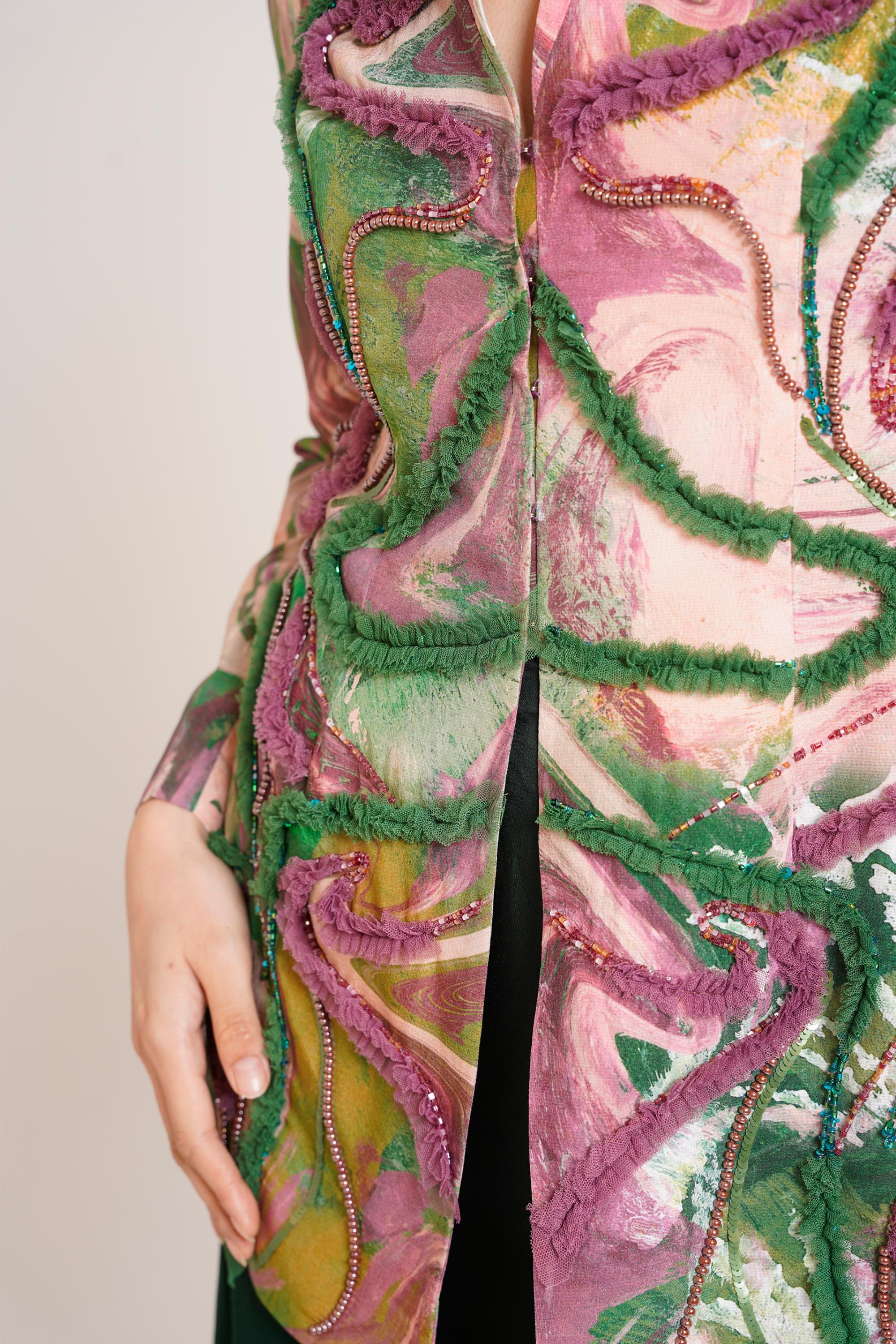 Founded by Advaitha Ravishankar in 2020, Advait merges fine art and fashion with bold prints, vibrant colors, and unique textures. Rooted in sustainability with carefully sourced fabrics, the brand explores innovative techniques like hand-painting and 3D embroidery. Celebrated globally and featured in Vogue and Cosmopolitan, Advait’s designs are loved by celebrities for their distinctive artistry and craftsmanship.