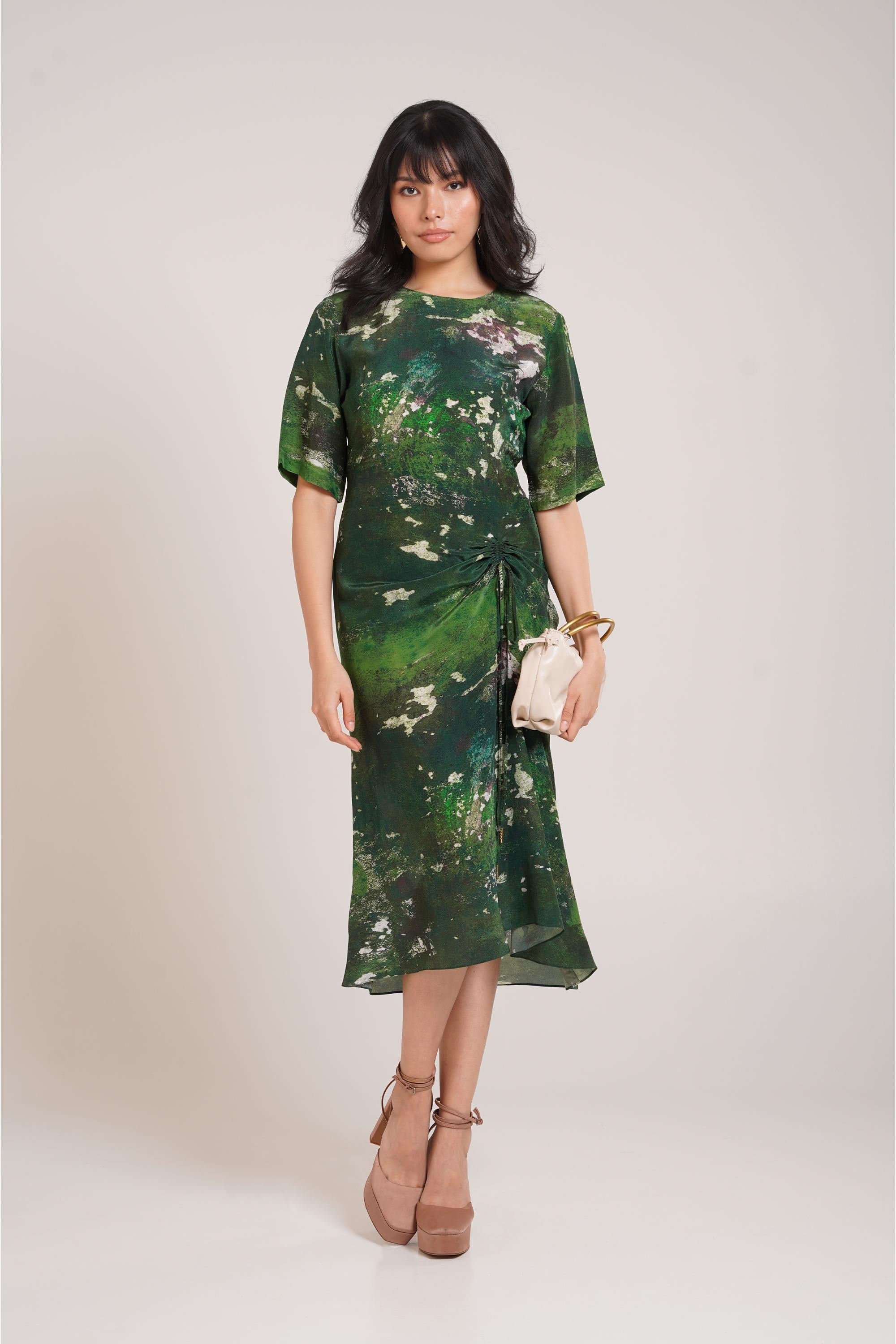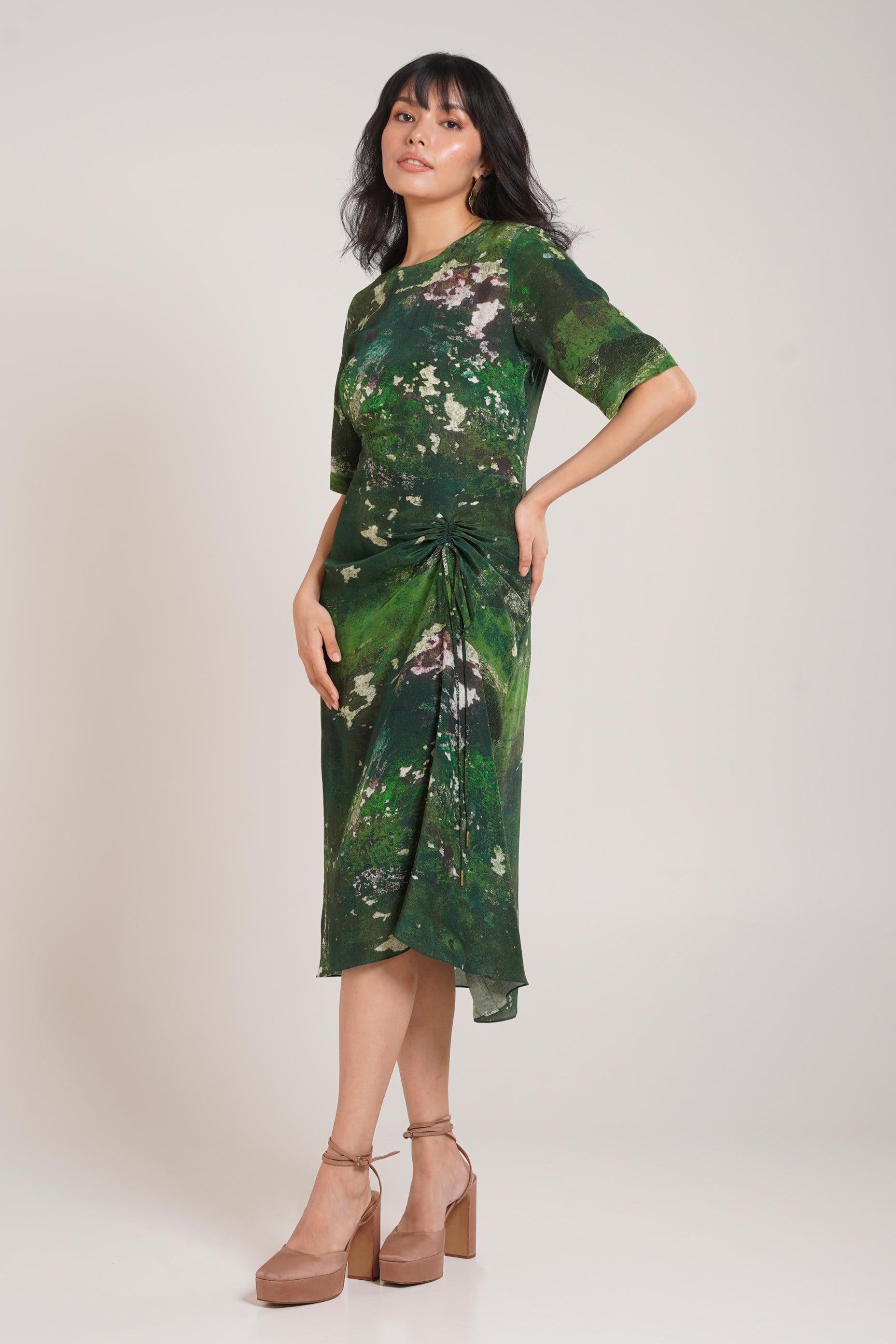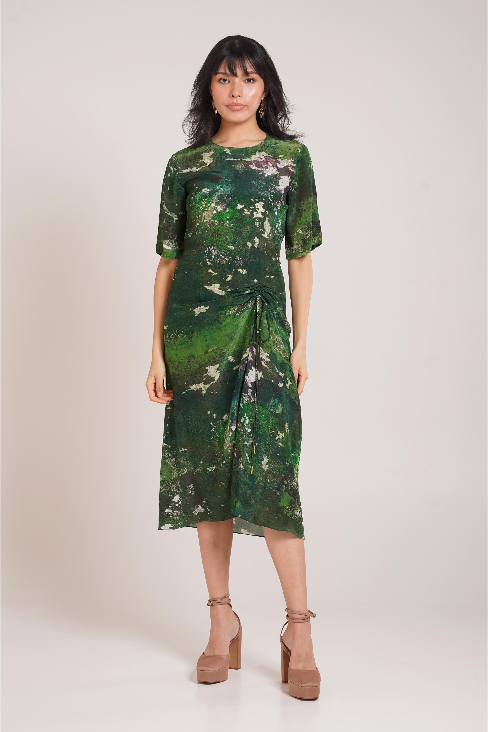The Multicolor Chaya Sage Ruched Dress by Advait is designed to elevate your evening style with its graceful detailing and modern silhouette. This ruched dress brings together elegance and artistry, making it the perfect attire for an evening soiree. The careful placement of ruching enhances natural curves, giving the outfit a flattering fit that exudes confidence. Crafted from soft, breathable fabric, this ruched dress allows effortless movement while maintaining its structured appeal. The multicolor tones add vibrancy and depth, creating an eye-catching ensemble that works beautifully under evening lights. Whether you’re attending a cocktail party, dinner gathering, or semi-formal event, the ruched dress ensures you look poised and fashionable. Styling this ruched dress offers endless possibilities. Pair it with metallic heels and a clutch for a glamorous vibe or keep accessories minimal to let the ruching detail shine. Its body-contouring design makes it versatile enough to be worn across various evening occasions, striking the perfect balance between refined charm and comfort. The ruched dress also reflects Advait’s philosophy of merging timeless silhouettes with contemporary flair. Unlike simple evening wear, the artistic ruching introduces depth and dimension, making this piece stand out as more than just a dress—it becomes a fashion statement. Its vibrant hues and flowing design embrace modern femininity with grace. More than just evening attire, the Multicolor Chaya Sage Ruched Dress embodies confidence, allure, and self-expression. It is designed for the modern woman who wants to feel empowered while looking elegant. Perfectly tailored for evening soirees, this ruched dress is a wardrobe must-have that blends bold color with flattering sophistication, ensuring you leave a lasting impression wherever you go.