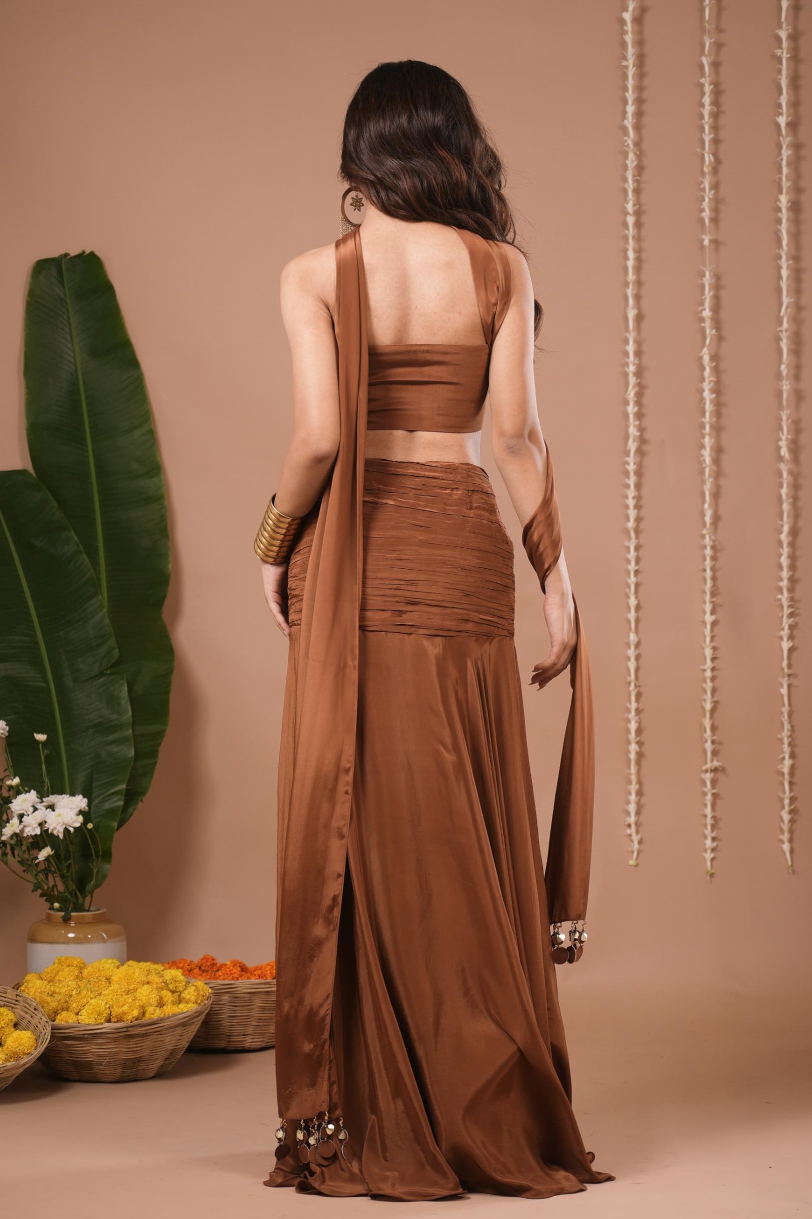 Stand out with this brown corset indo skirt dress by AHI Clothing. The structured corset top highlights your figure while the flowing skirt gives movement and charm. Perfect for cocktail nights, receptions, or destination weddings, this indo skirt dress is ideal for women who want a balance of glamour and comfort. With its Indo-western edge, this indo skirt dress ensures you’re noticed at any gathering. Designed with attention to both style and fit, the indo skirt dress is versatile and chic. AHI Clothing combines bold fashion with cultural inspiration, making this indo skirt dress a must-have for stylish celebrations.