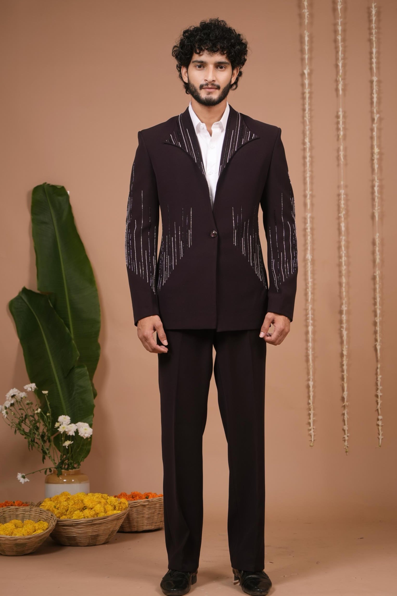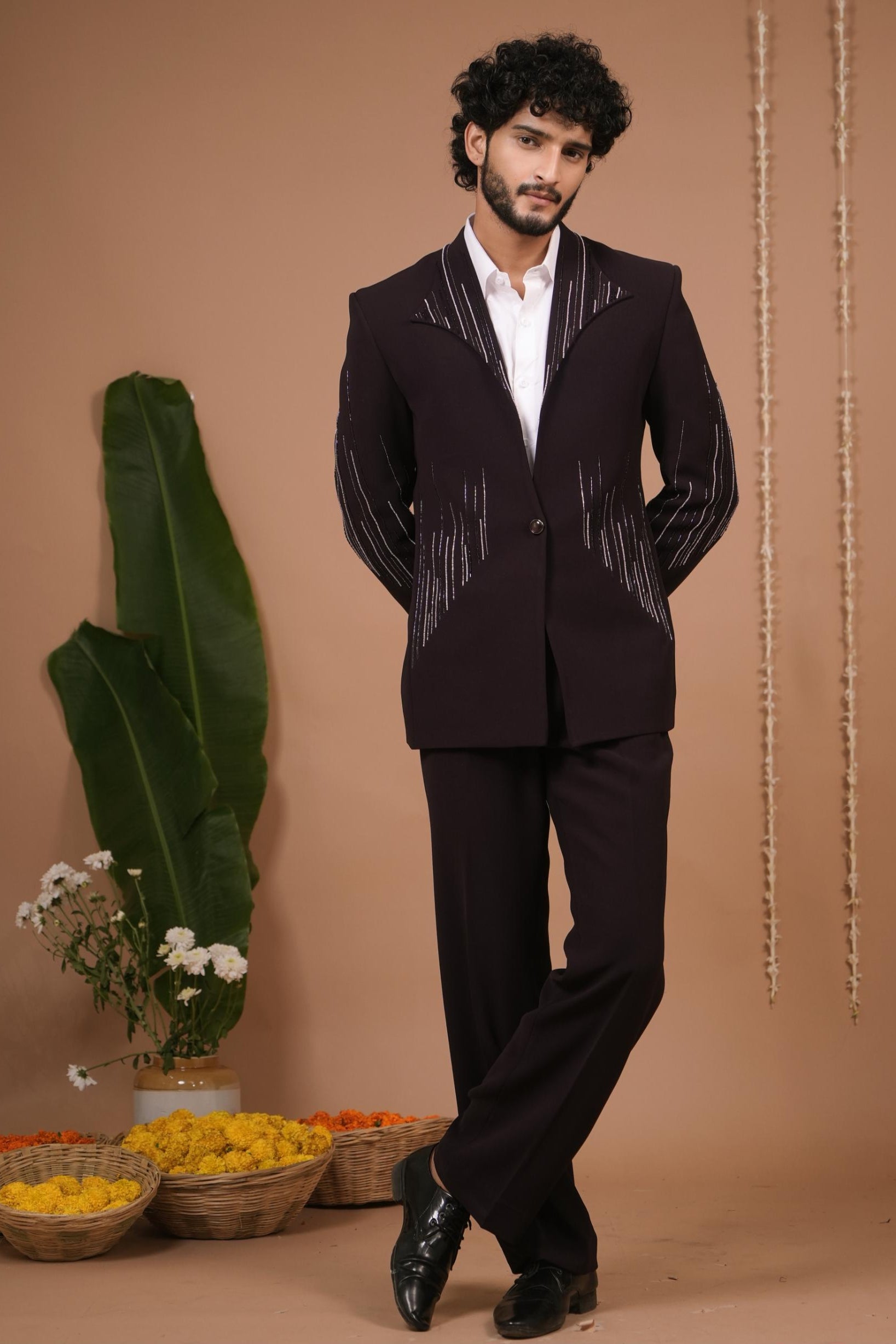 Stand out with this dark purple coat pant set by AHI Clothing. Perfect for receptions, gala events, or cocktail weddings, this coat pant set combines regal elegance with modern design. The structured tailoring ensures the coat pant set fits flawlessly, while the deep purple shade adds dramatic sophistication. Lightweight and comfortable, the coat pant set transitions seamlessly into evening celebrations. Pair this coat pant set with classic footwear for a refined finish. AHI Clothing creates this coat pant set for men who value bold fashion with timeless appeal.