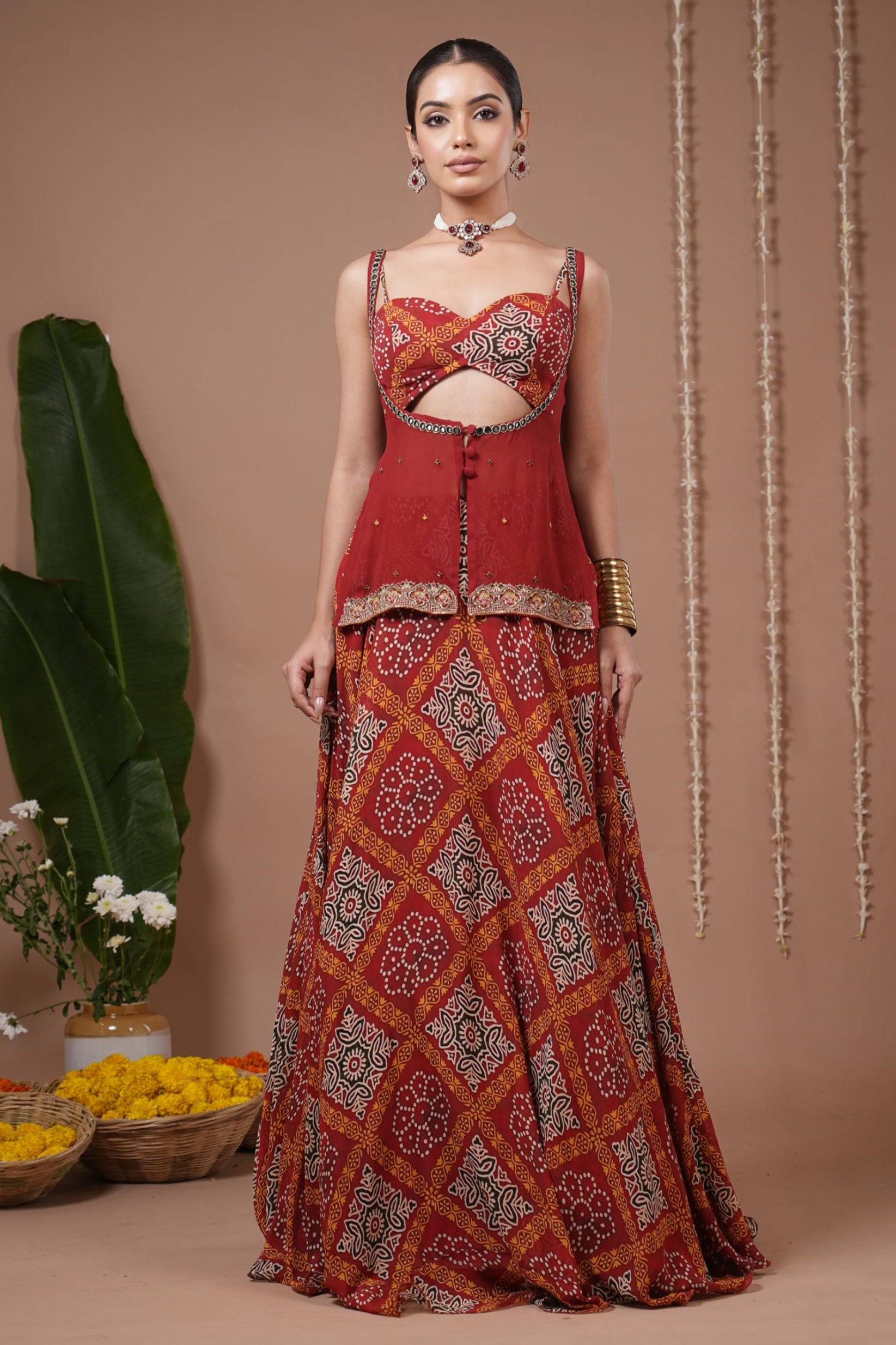 Celebrate timeless tradition with this red bandhani printed lehenga set by AHI Clothing. Designed for weddings, sangeets, and grand festive occasions, this lehenga set captures cultural richness. The bold red shade enhances elegance, while the intricate print ensures the lehenga set feels luxurious and classic. Lightweight yet dramatic, the lehenga set is versatile for day or night events. The flared cut gives ease of movement, allowing you to dance or socialize in comfort. AHI Clothing’s artistry makes this lehenga set a staple for wedding wardrobes. With its balance of heritage and modern design, this lehenga set will always be in style.