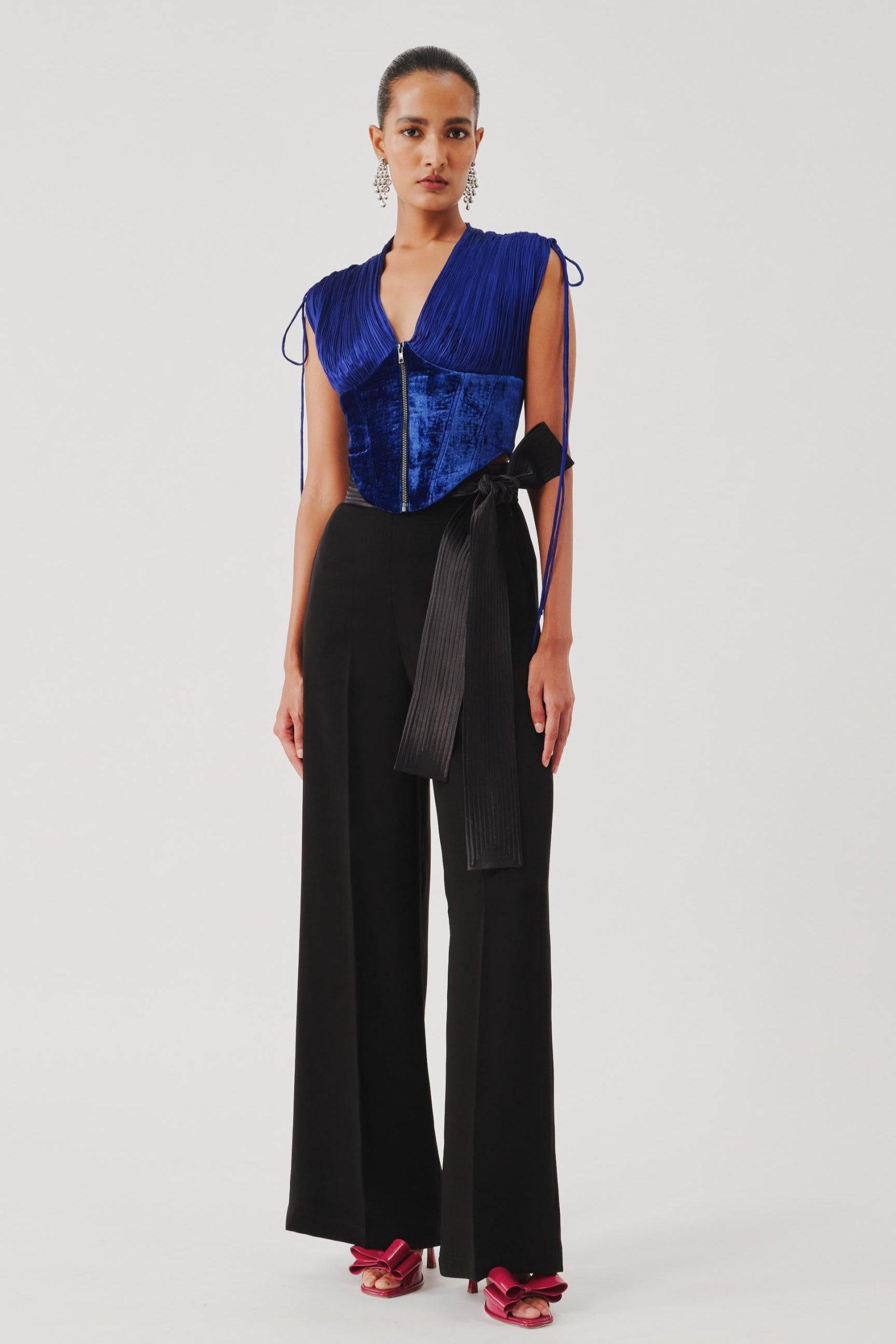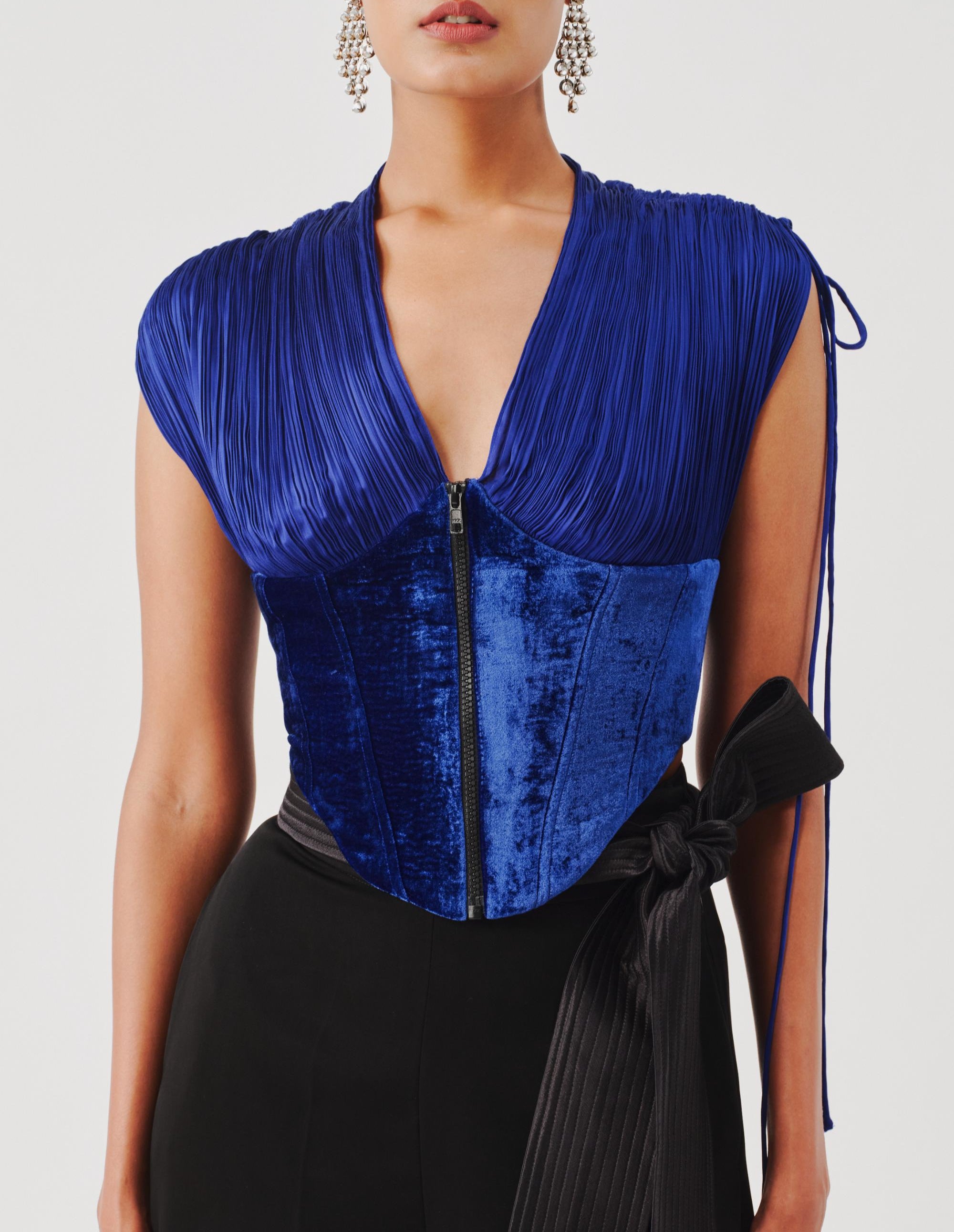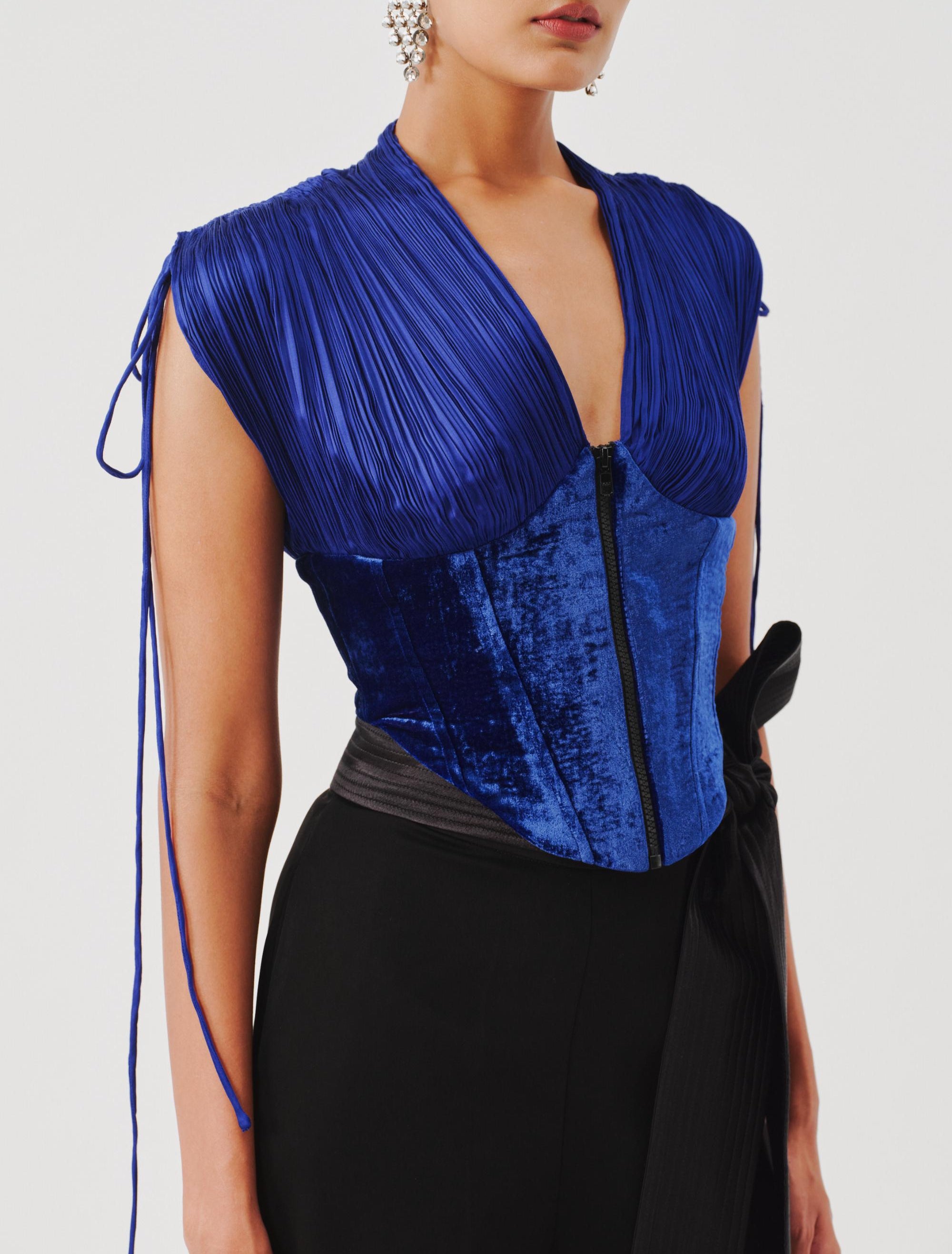 Aroka’s blue corset top is a testament to contemporary craftsmanship. Designed with structured boning and soft detailing, this blue corset top highlights the waist gracefully. Pair this blue corset top with skirts or trousers for a striking evening look. The versatile blue corset top works beautifully for cocktail events, date nights, or festive gatherings. Aroka brings artistry and allure into every stitch of this blue corset top masterpiece.
