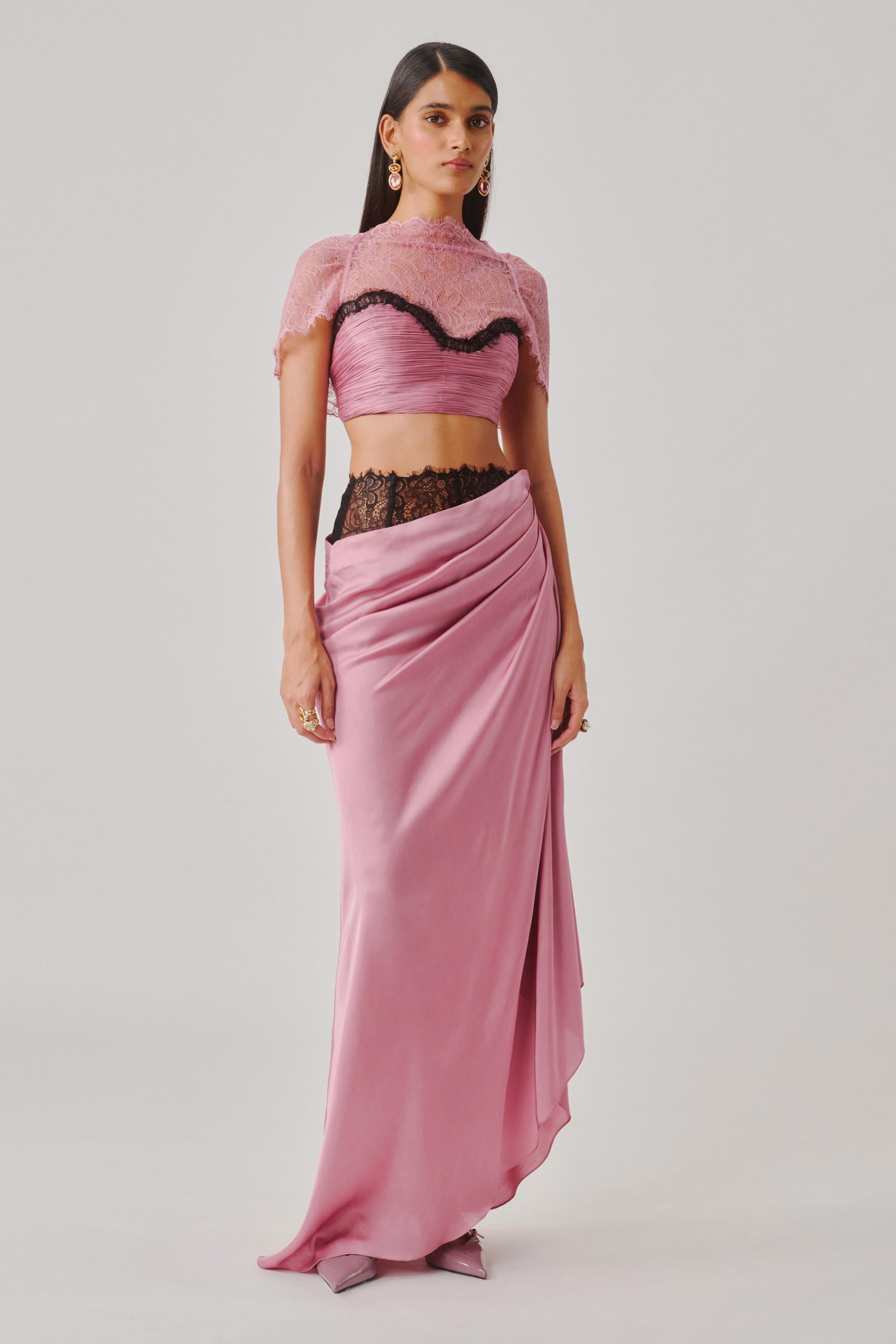 The Pink Rosette Co-ord Set by Aroka captures feminine elegance through soft detailing and a modern silhouette. Designed for contemporary celebrations, this ensemble blends romantic tones with clean tailoring. The coordinated top and skirt offer versatility while maintaining a cohesive aesthetic that feels fresh, refined, and stylish.
