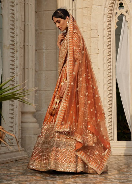 The aster lehenga is a dazzling blend of intricate craftsmanship and modern glamour. Featuring a lehenga adorned with heavy cut dana and sequin work alongside delicate machine embroidery, it boasts a captivating sparkle and texture that makes a bold statement. The shimmering embellishments create a stunning visual effect, perfect for any grand celebration.