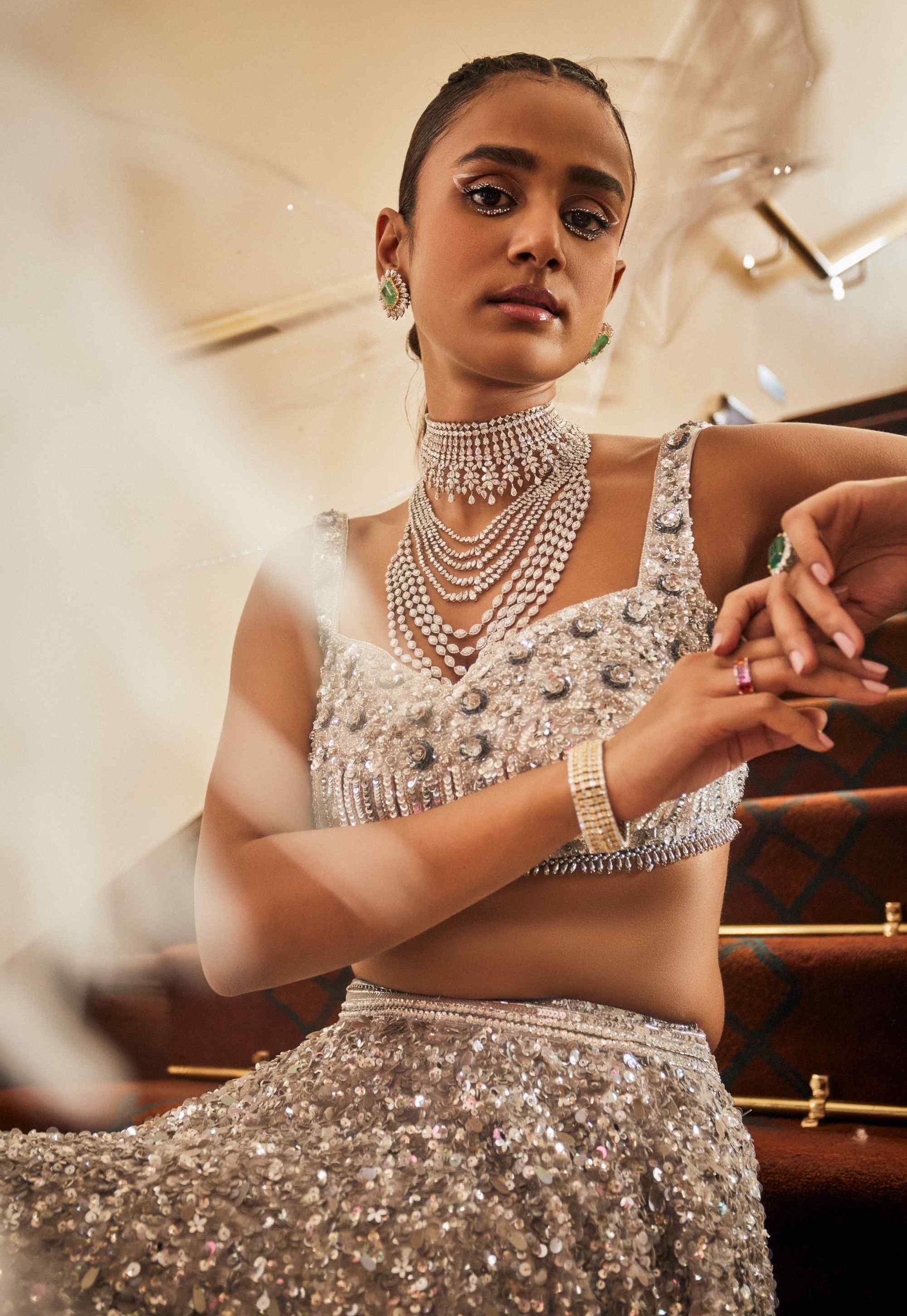 Ava silver sparkle gray lehenga set