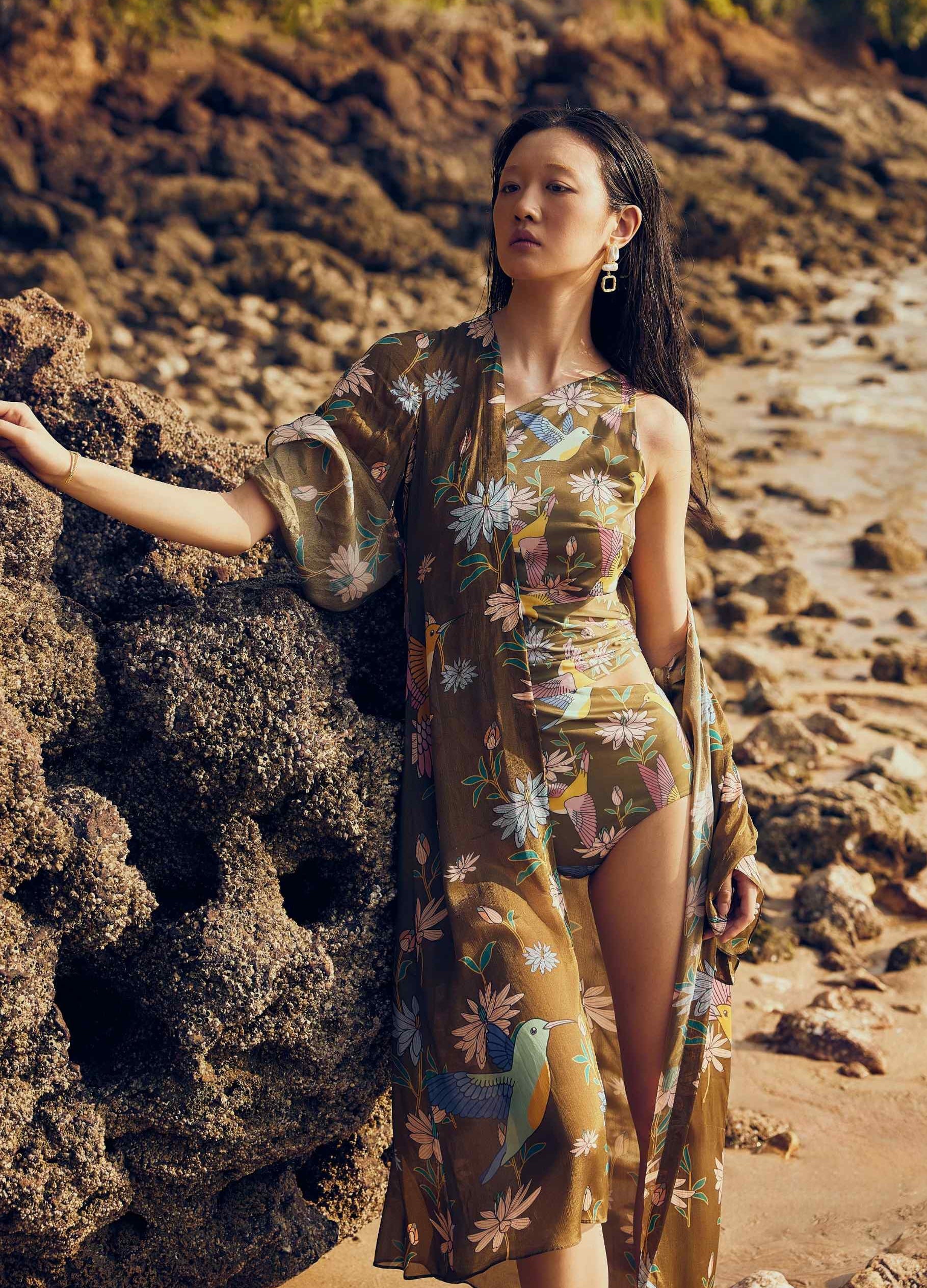 Explore the captivating allure of the Aviary Monokini with Cape, a true masterpiece in modern swimwear design. This exceptional monokini features a sleek, contoured silhouette that beautifully accentuates your figure, while the elegant cape adds a dramatic flair, perfect for making a bold statement. Crafted from high-quality, stretchable fabric, the Aviary Monokini ensures both comfort and style, allowing you to move with confidence and grace. Ideal for those who seek a blend of sophistication and edge, this monokini is your go-to choice for turning heads at the beach or pool. Elevate your swimwear collection with this stunning piece that embodies both fashion-forward design and effortless elegance.