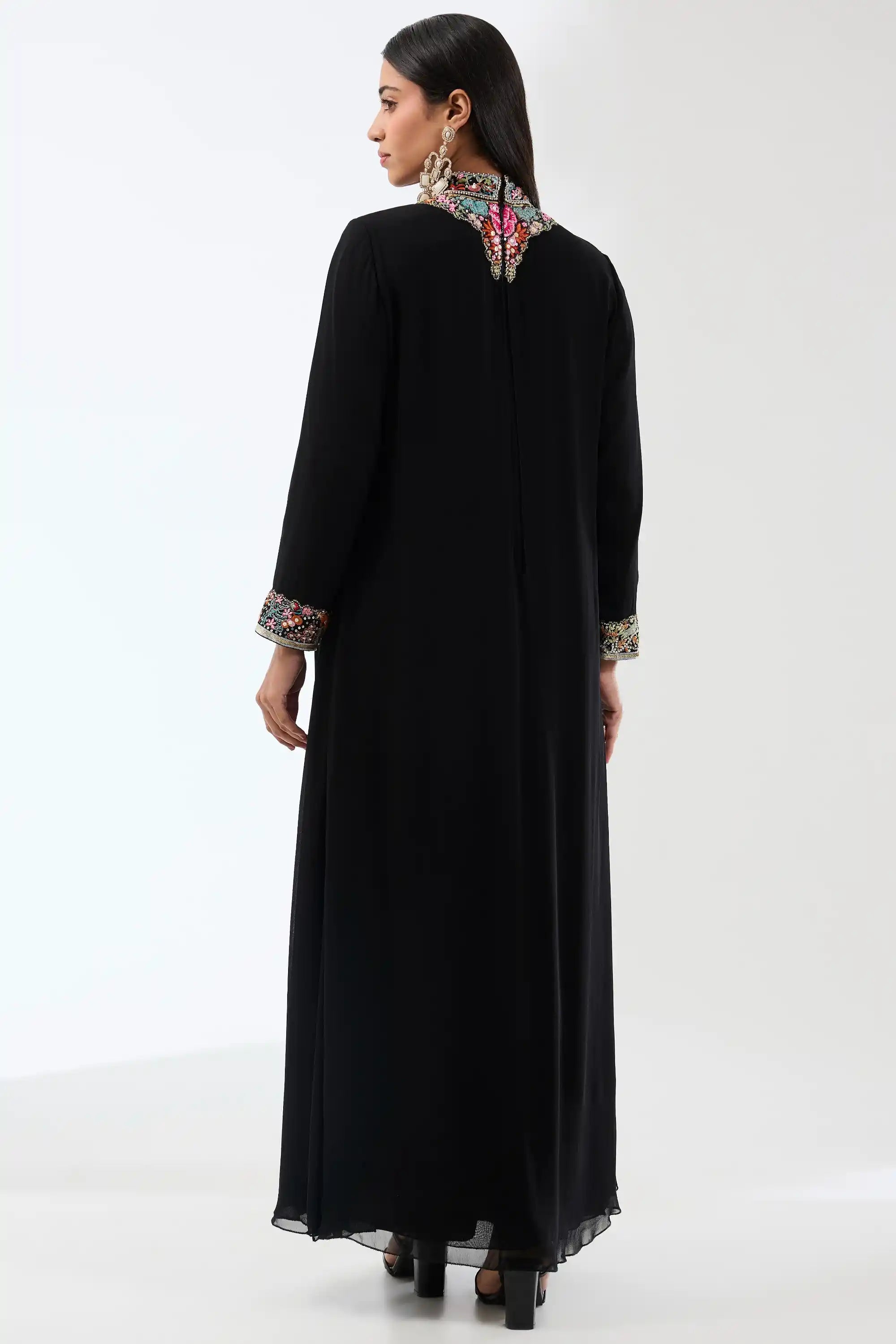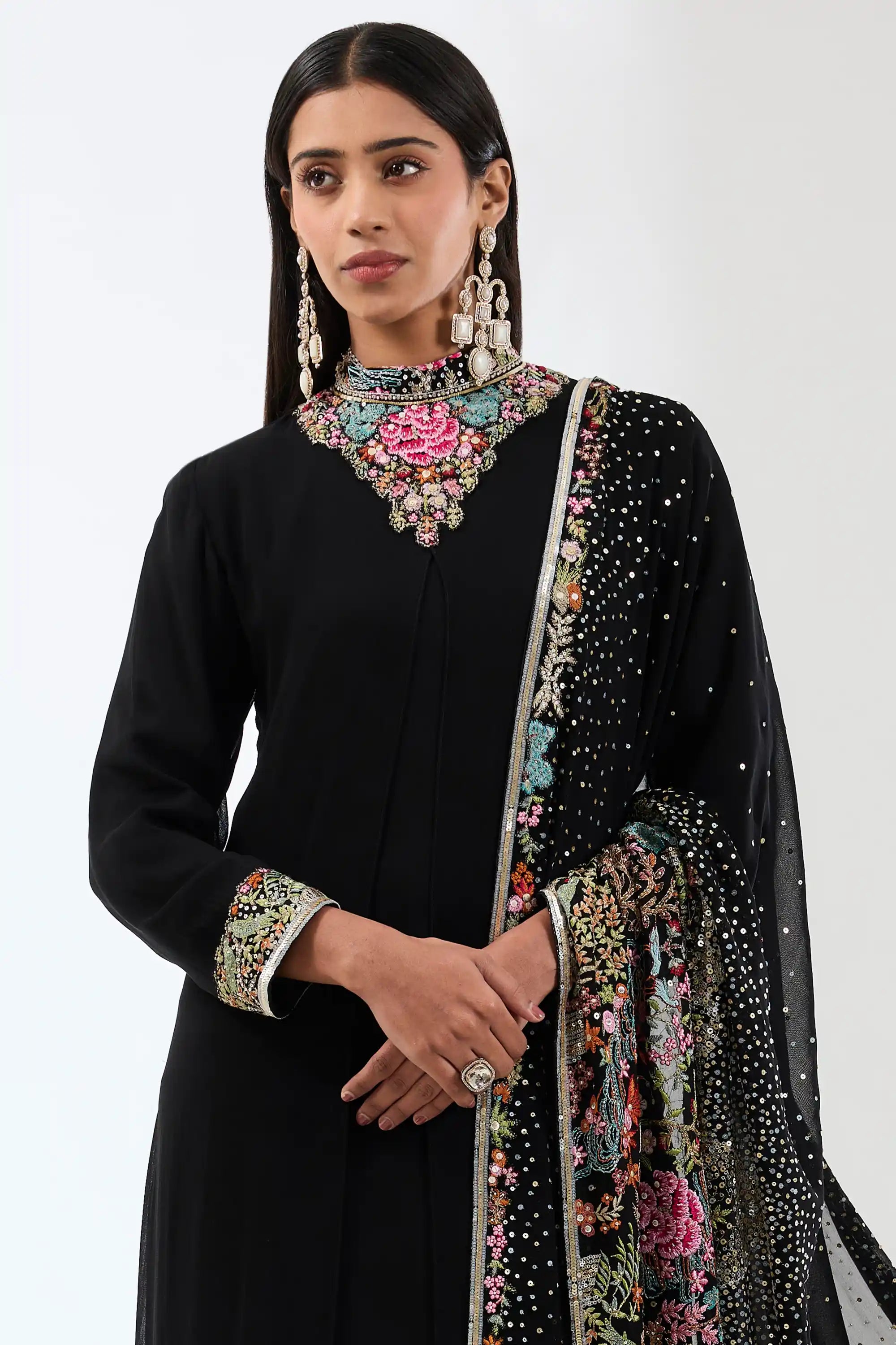 Elevate your style with this stunning black georgette long kurta featuring a graceful two-layer design. Paired with a fully embroidered dupatta, this ensemble exudes elegance and sophistication, making it perfect for special occasions and festive celebrations.