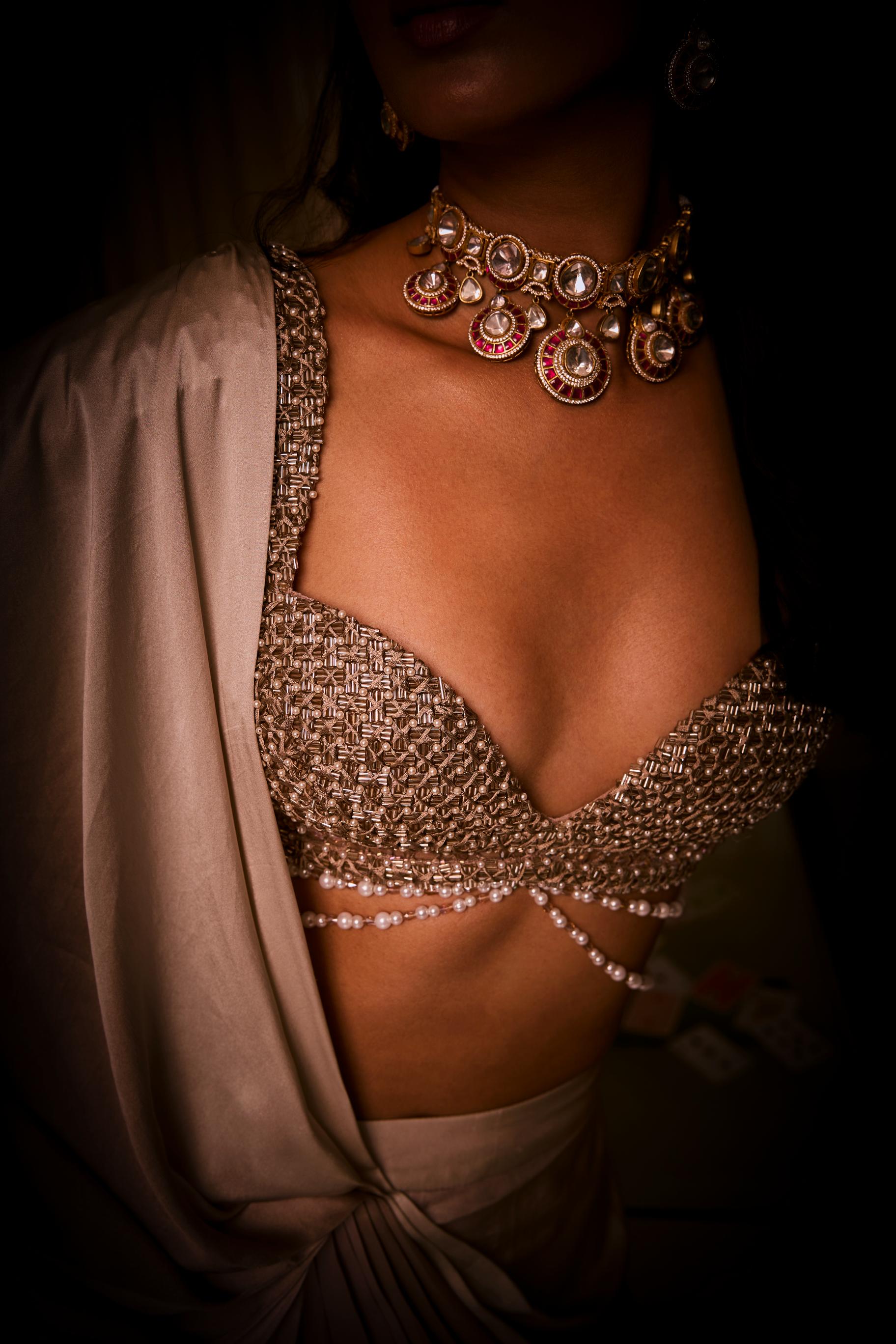 Components: 2 pieces (Pre-draped saree, blouse)