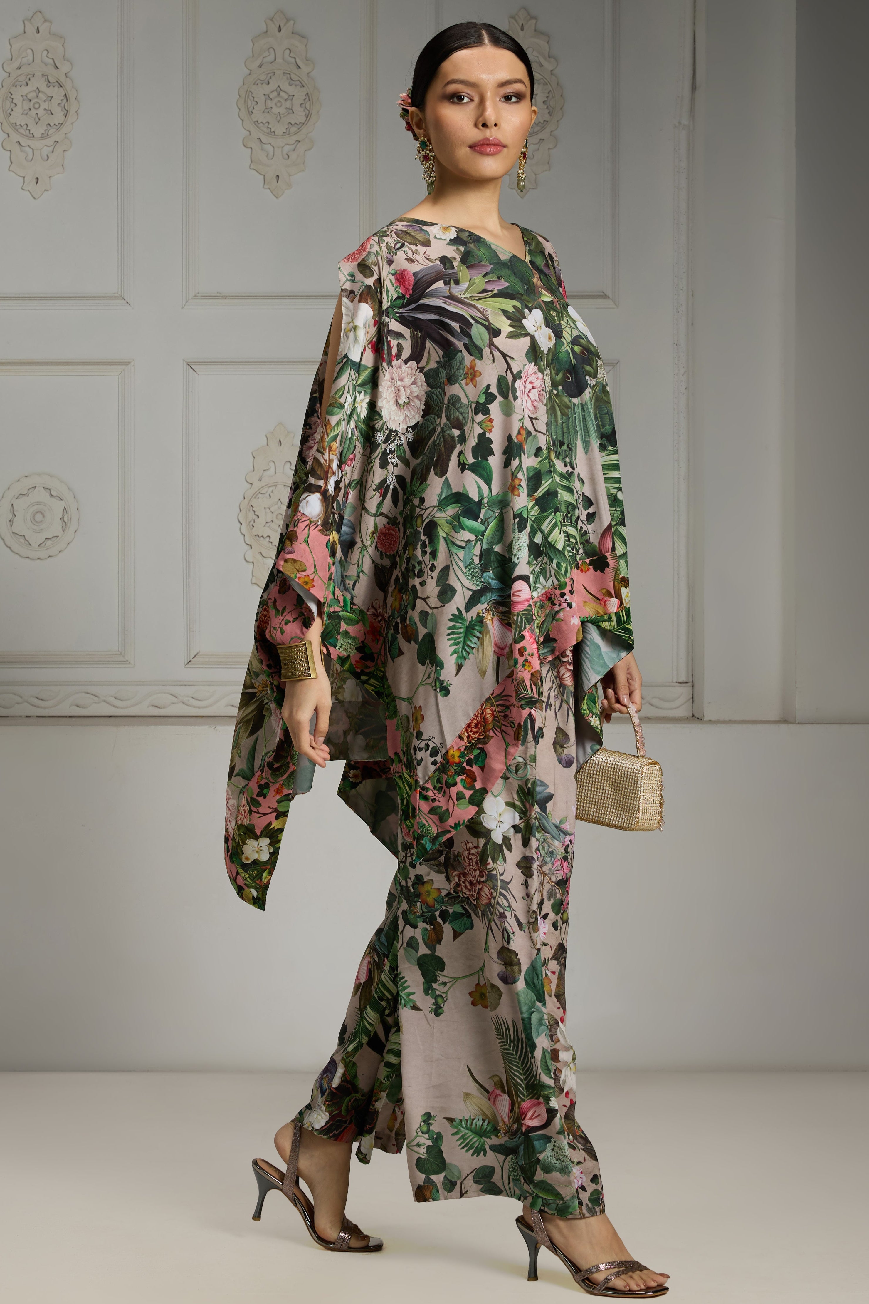 The Beige Botanical Printed Tunic Set brings nature-inspired elegance to everyday wear. Featuring delicate botanical motifs on a soft beige base, this set offers a soothing palette and relaxed silhouette for all-day comfort. Perfect for brunches, casual outings, or festive day events, it's a graceful blend of earthy tones and timeless style.