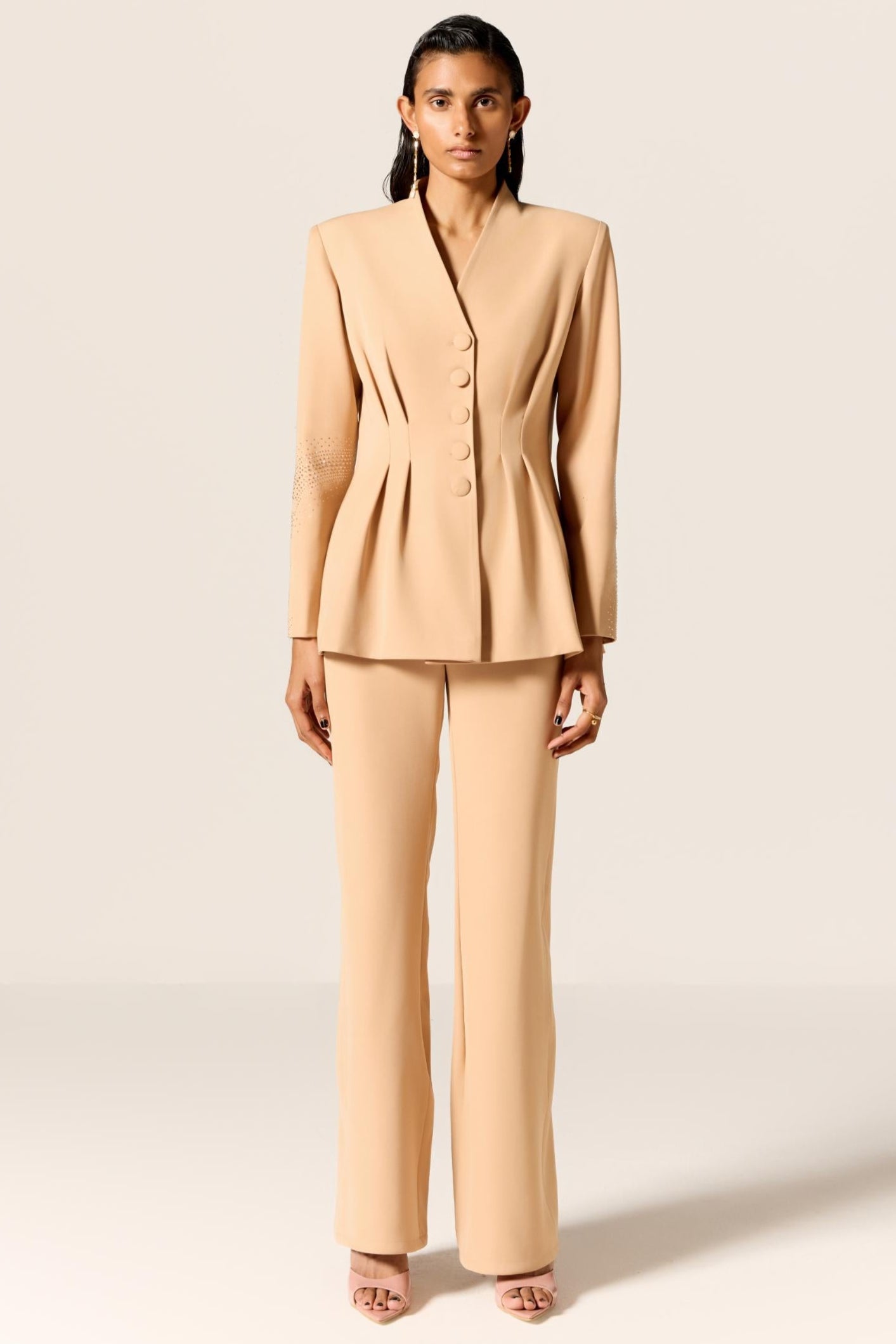 The Beige Cosmo Eminence Co-ord Set blends classic tailoring with modern elegance. Featuring a soft beige shade and a sleek silhouette, it's perfect for formal occasions and professional settings. This coordinated set offers a polished, sophisticated look. Designed for those who value style and confidence. A timeless addition to any wardrobe.