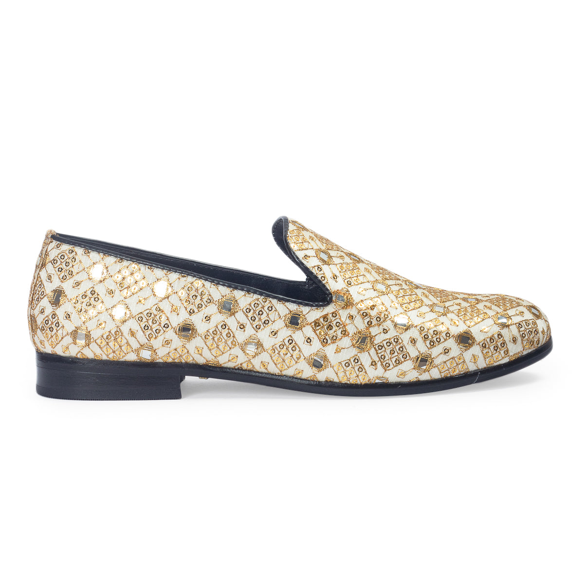 Redefine sophistication with the Beige Darpan Slip-Ons, a seamless blend of artistry and luxury. Crafted from plush beige fabric, these slip-ons feature intricate mirrorwork-inspired embroidery, symbolizing grace and refinement. Perfect for weddings, cultural festivities, and elite gatherings, they add a radiant charm to any ensemble.