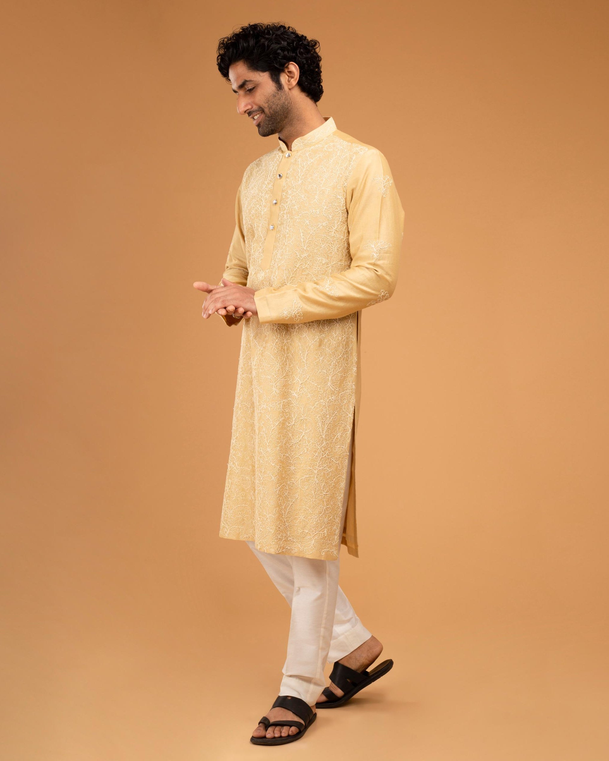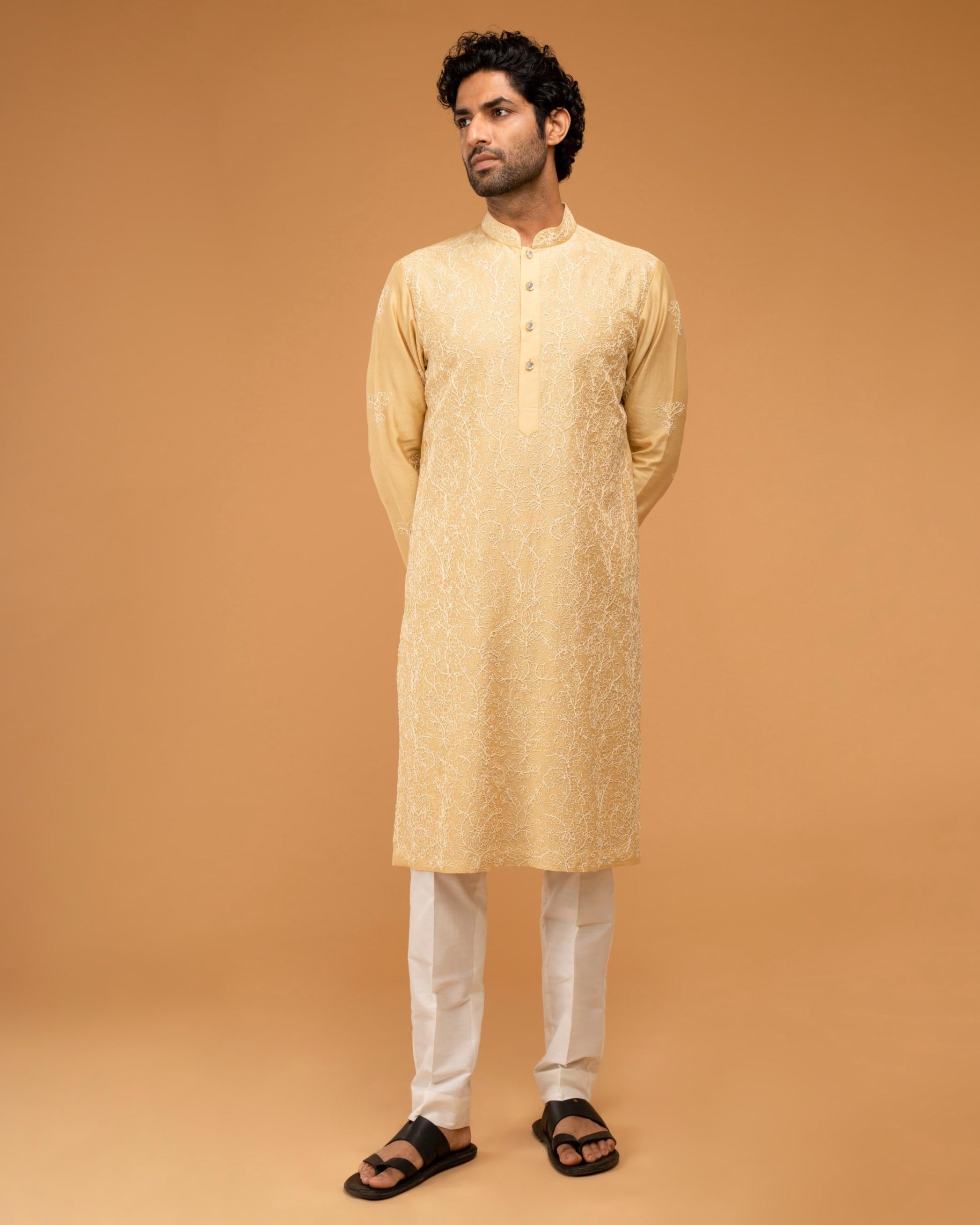 Elegant and intricately detailed, the Beige Dori Embroidery Kurta Set is a timeless expression of artisanal craftsmanship. Featuring delicate dori (cord) embroidery across a classic silhouette, this kurta set blends subtle texture with traditional charm. The soft beige hue adds a sense of calm sophistication, making it perfect for wedding rituals, festive gatherings, or cultural celebrations. Paired with coordinated bottoms, the Beige Dori Embroidery Kurta Set is ideal for the modern man who values grace, tradition, and understated luxury.