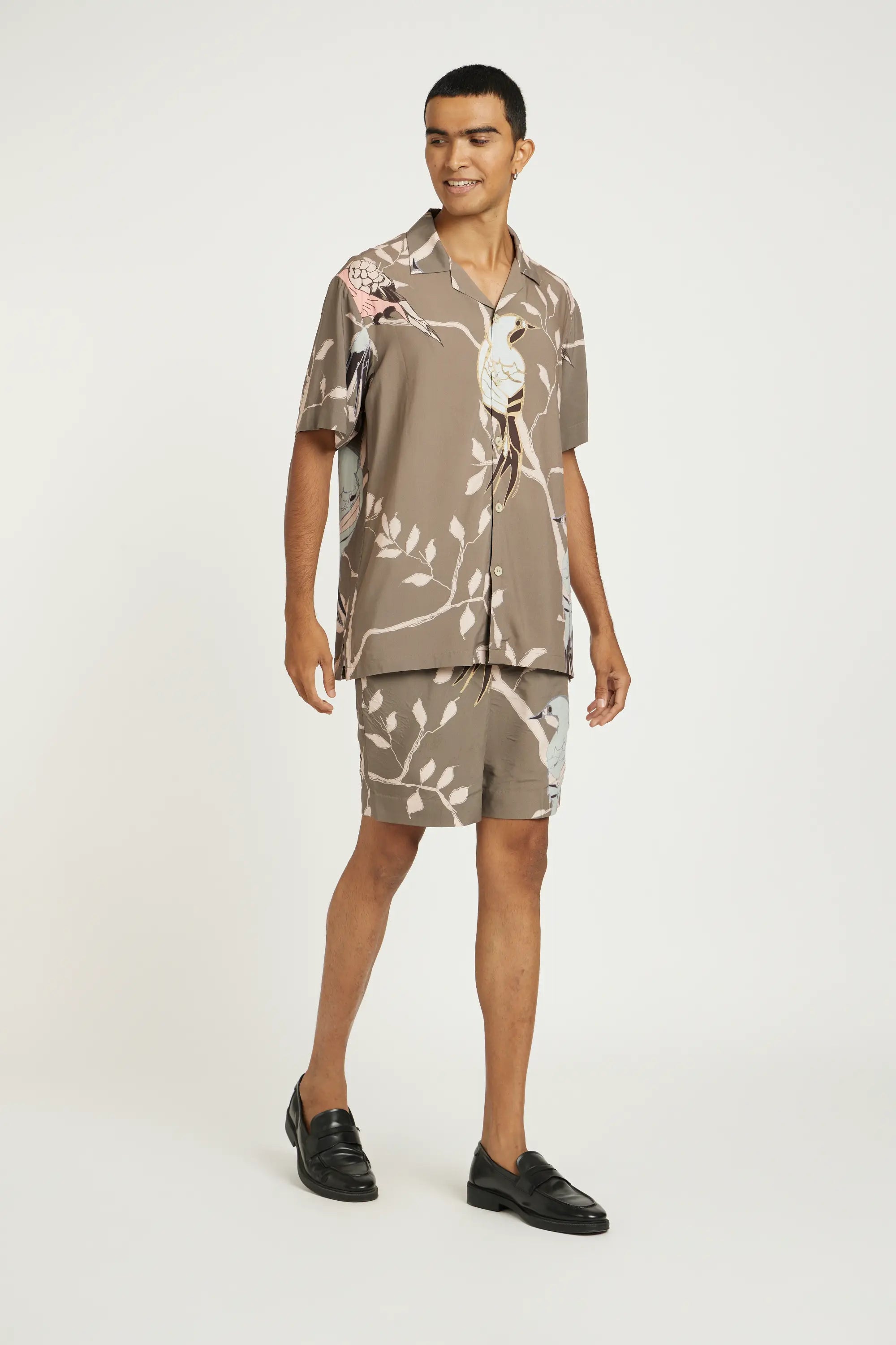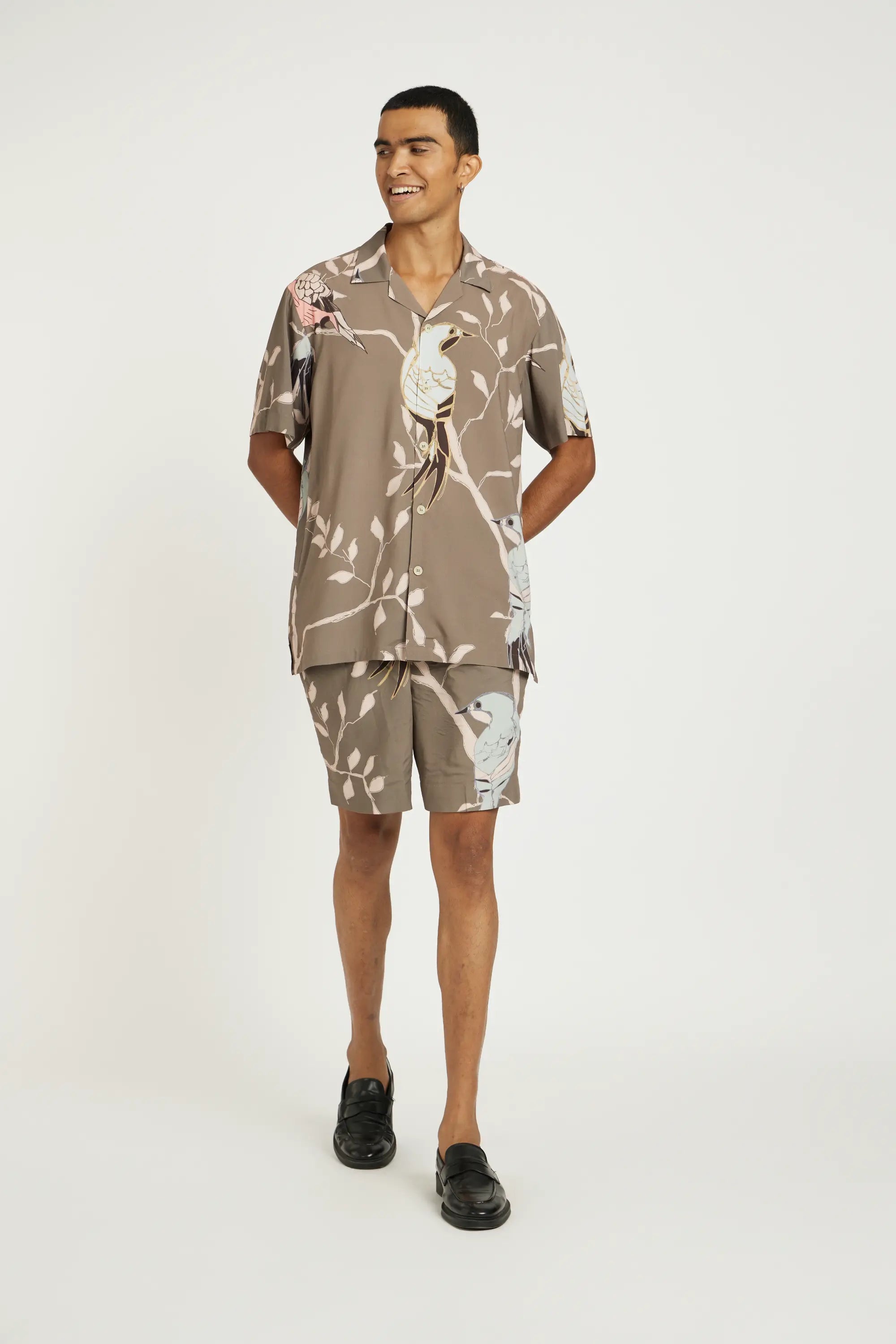 Embrace the beauty of nature with our Beige Forest Print Shirt paired with shorts, a perfect blend of style and comfort. This charming ensemble features a delicate forest print against a soft beige backdrop, evoking a serene, outdoor vibe. Crafted from lightweight, breathable fabric, the shirt offers a relaxed fit, making it ideal for warm-weather adventures.