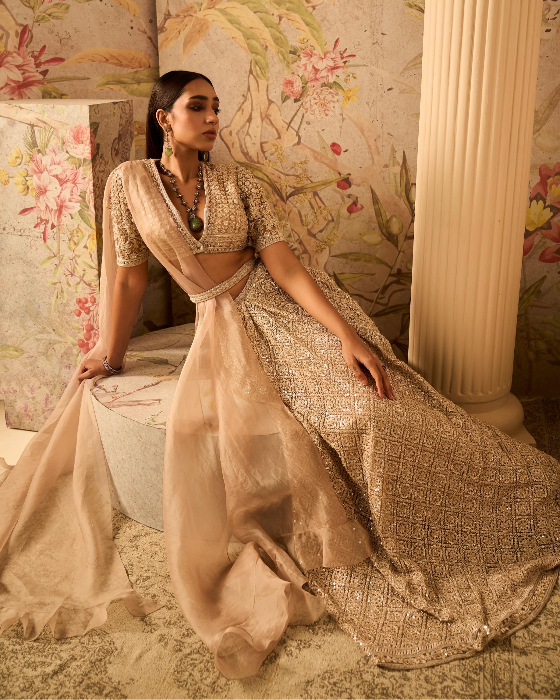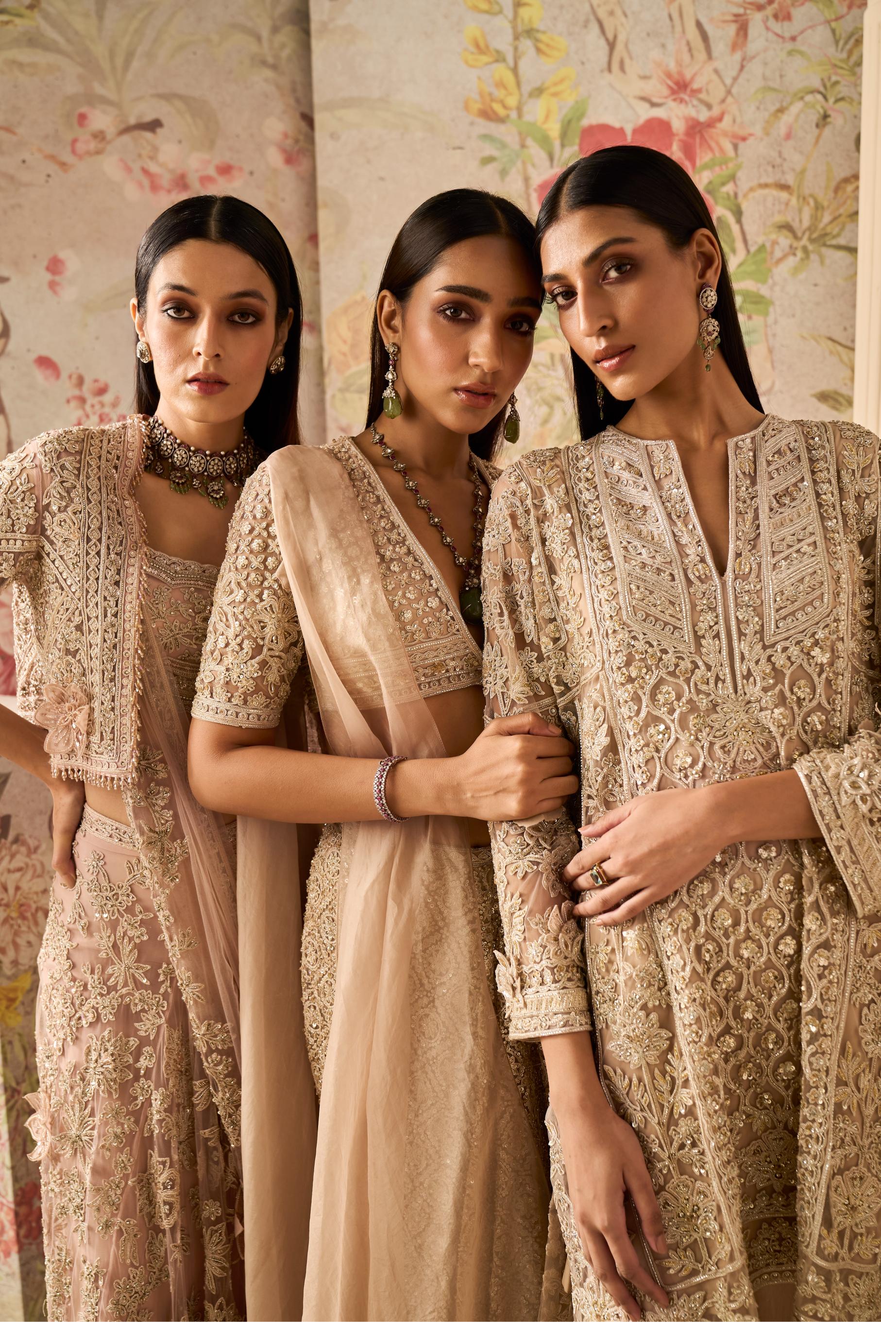 Ridhi Mehra is a New Delhi-based designer renowned for her contemporary interpretations of traditional Indian attire. Her eponymous label seamlessly blends vintage charm with modern aesthetics, incorporating European influences into classic Indian silhouettes. Established in 2012, the brand emphasizes clean lines, intricate embroidery, and refined detailing. Each piece reflects a commitment to craftsmanship and sophistication, catering to the modern woman who values both tradition and innovation.