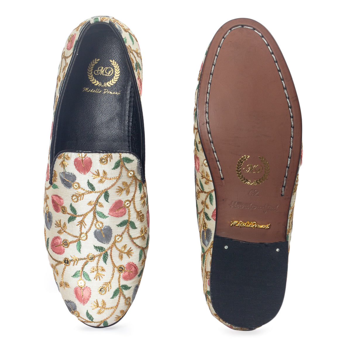 Celebrate the beauty of traditional craftsmanship with the Beige Kalamkari Slip-Ons, a perfect blend of heritage and modern sophistication. Featuring intricate Kalamkari-inspired embroidery on a plush beige base, these slip-ons showcase a timeless art form with a contemporary twist. Designed for weddings, cultural gatherings, and festive occasions, they add a touch of artistic elegance to any ensemble.