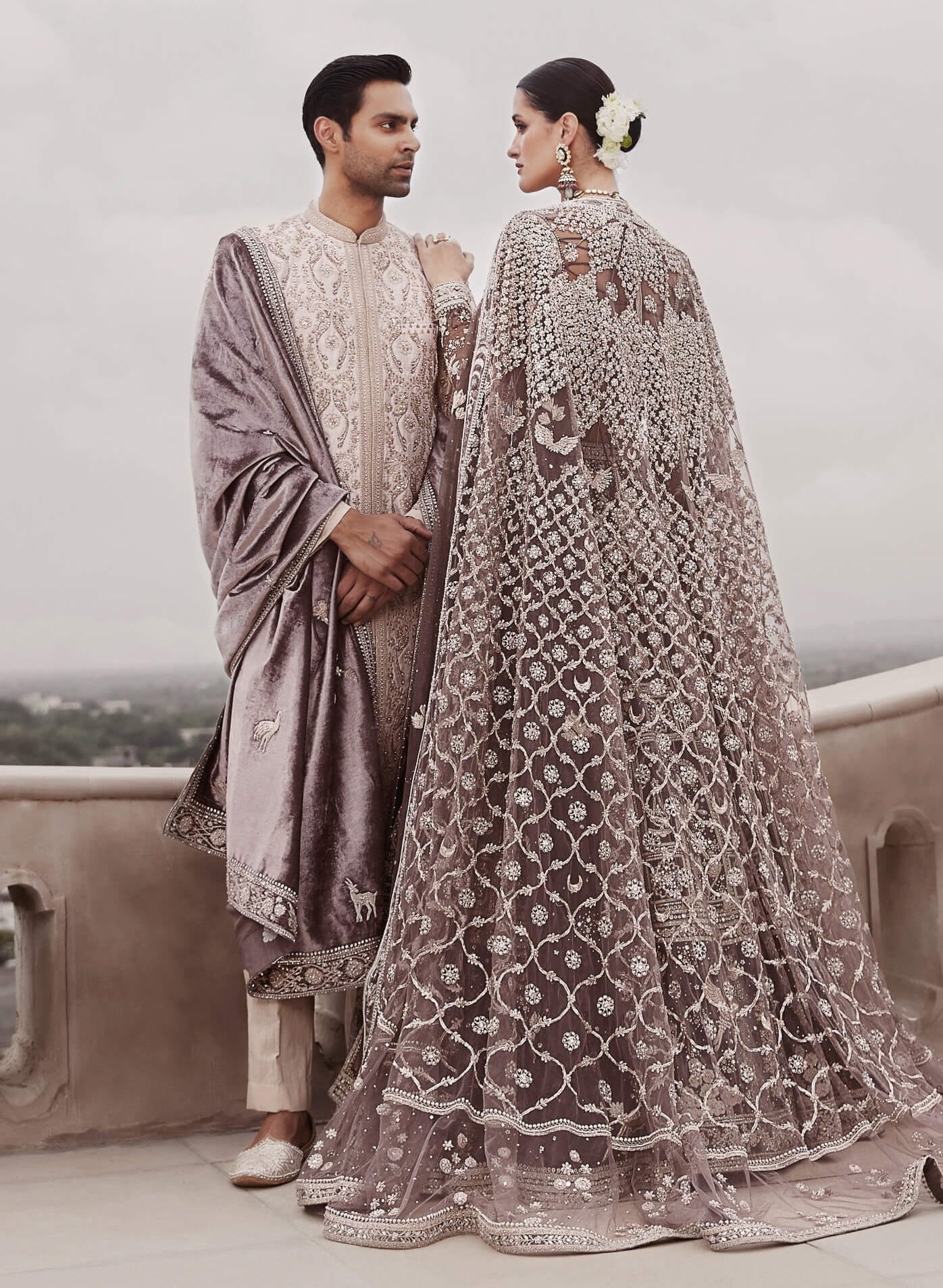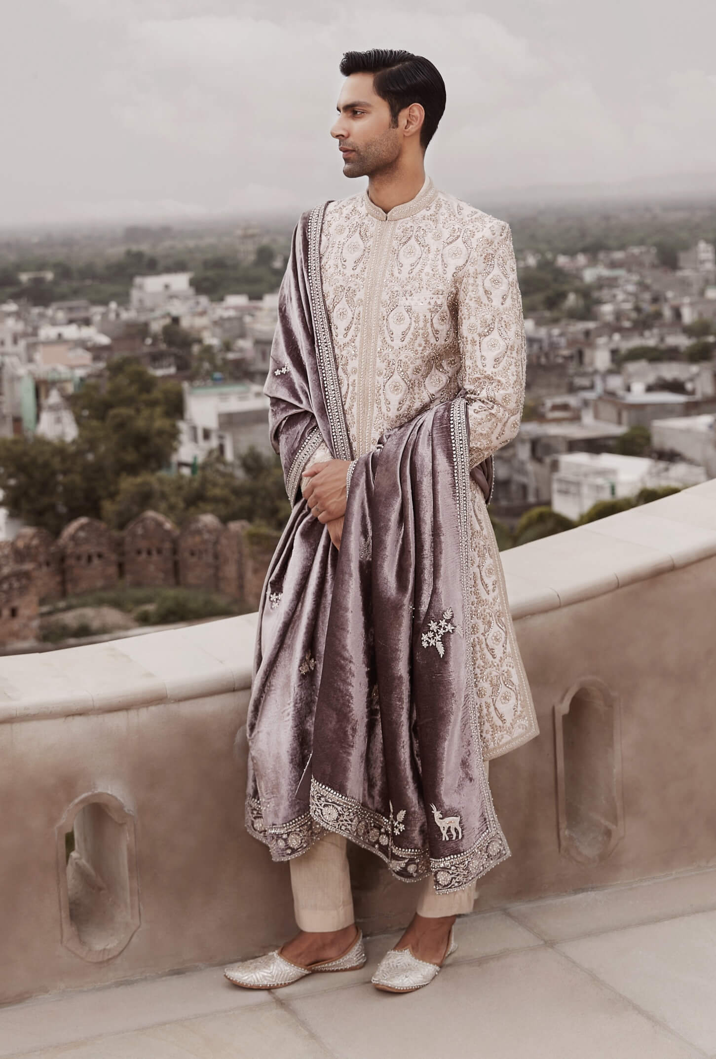 Components: 4 pieces (Sherwani, pant, kurta, stole)