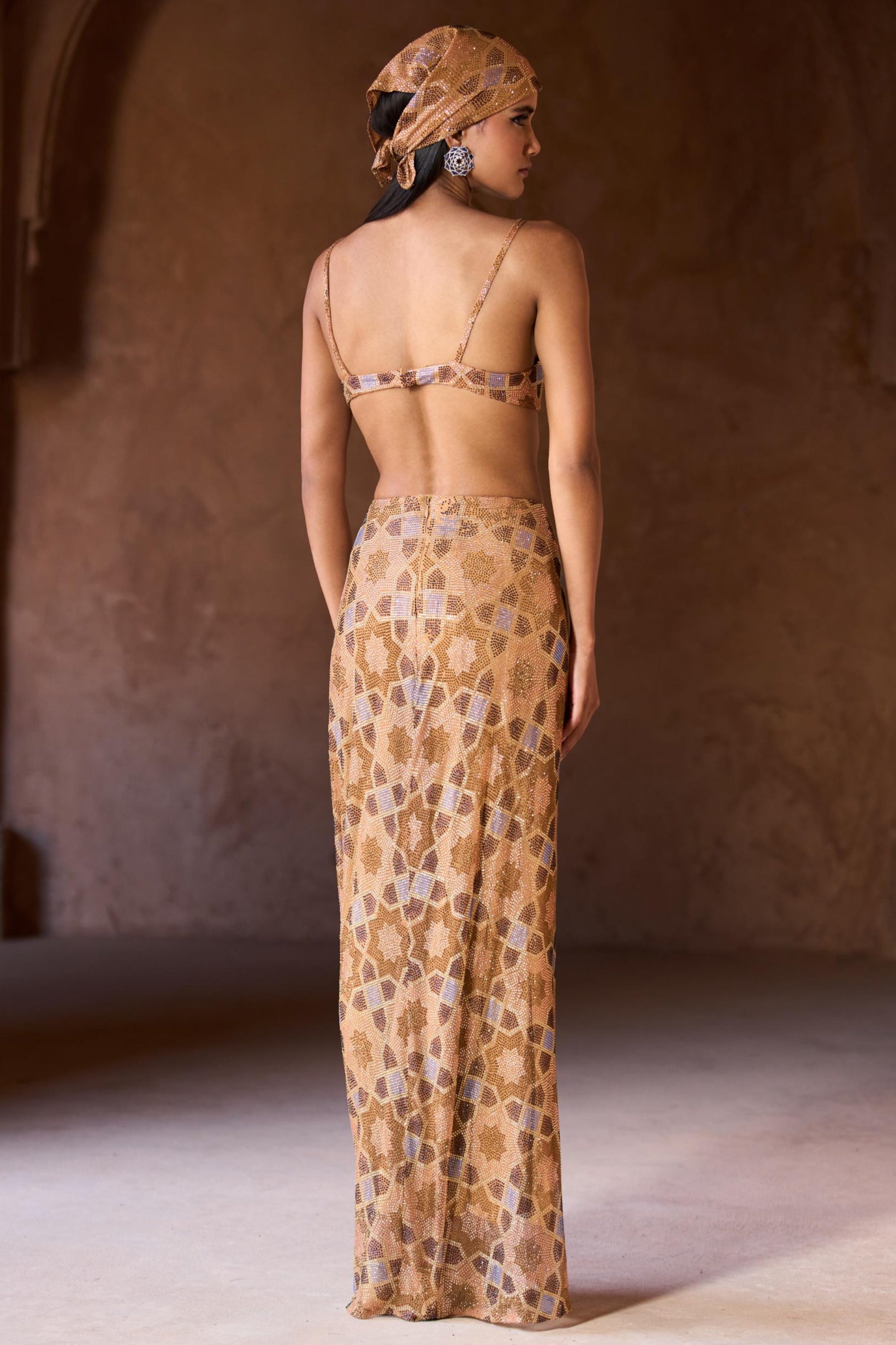 Components: 4 pieces (Bralette, skirt, cape, headgear)