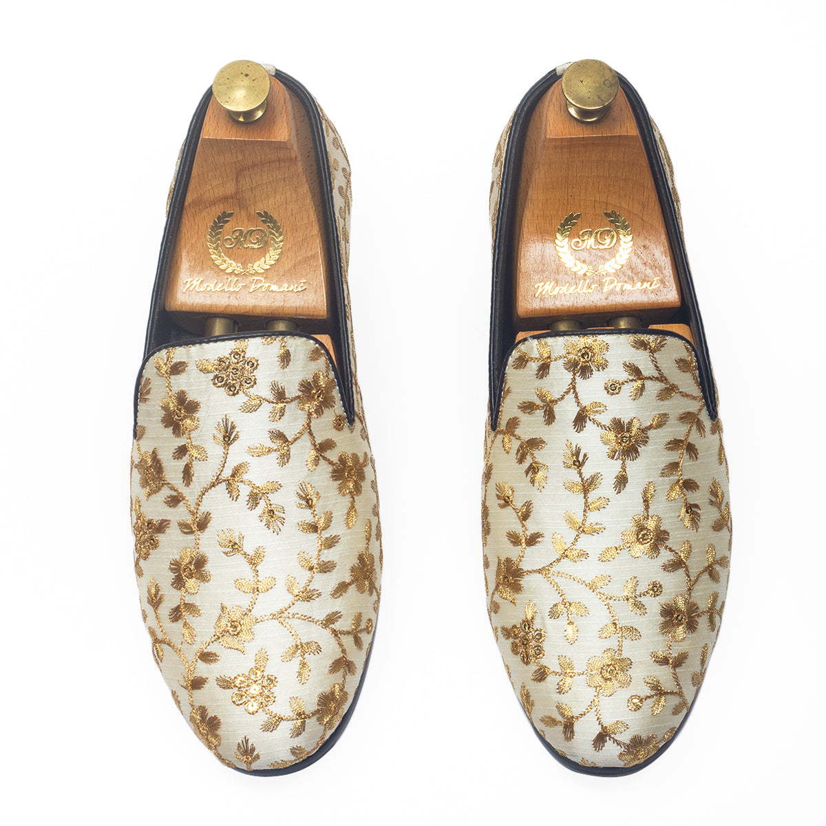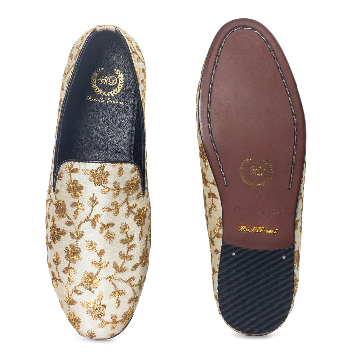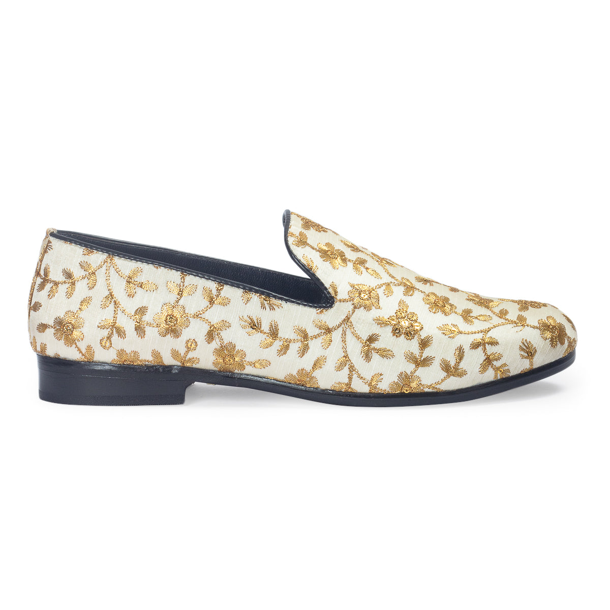 Experience the perfect blend of heritage and sophistication with the Beige Swarnam Slip-Ons. Designed for those who appreciate timeless artistry, these slip-ons feature delicate gold embroidery on a plush beige base, exuding understated luxury. Ideal for weddings, festive celebrations, and formal gatherings, they add a touch of grandeur to any ensemble.