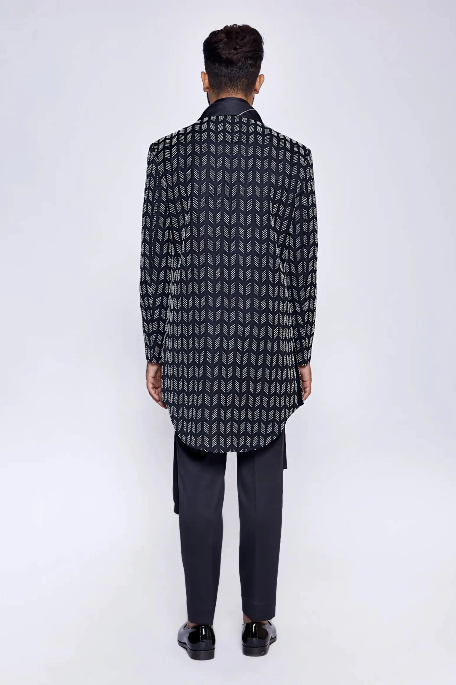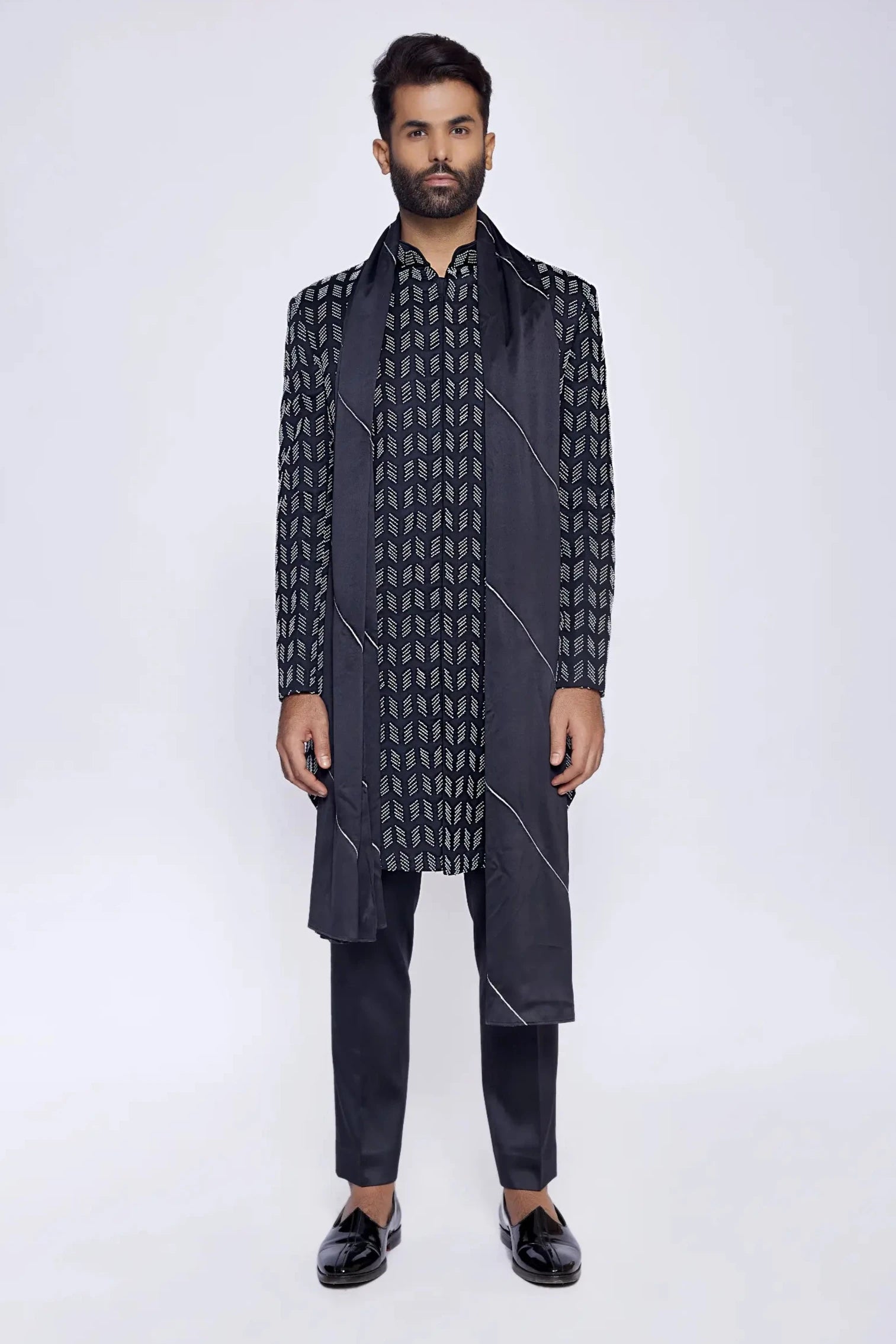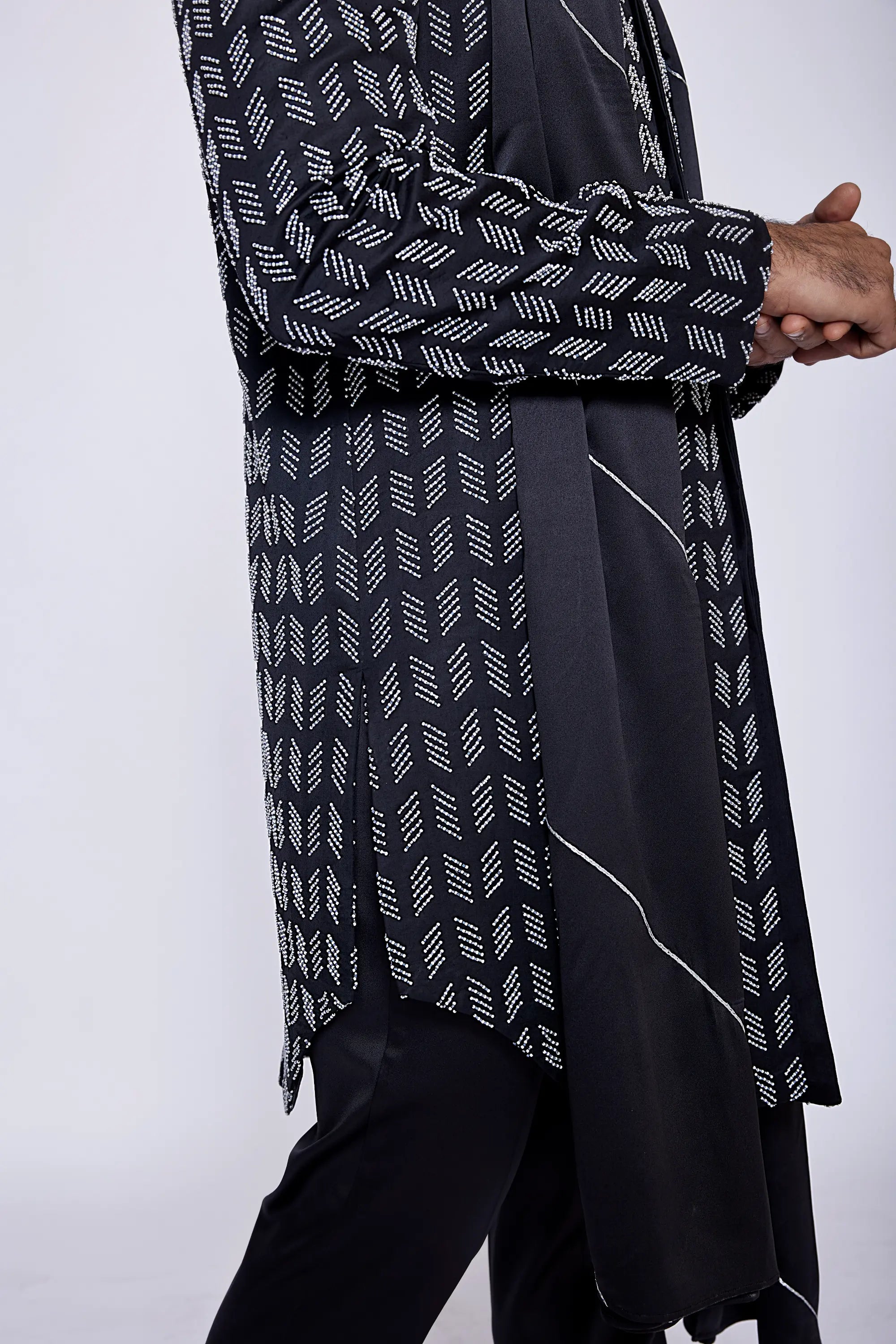 Black bead and cut dana embroidered consealed sherwani