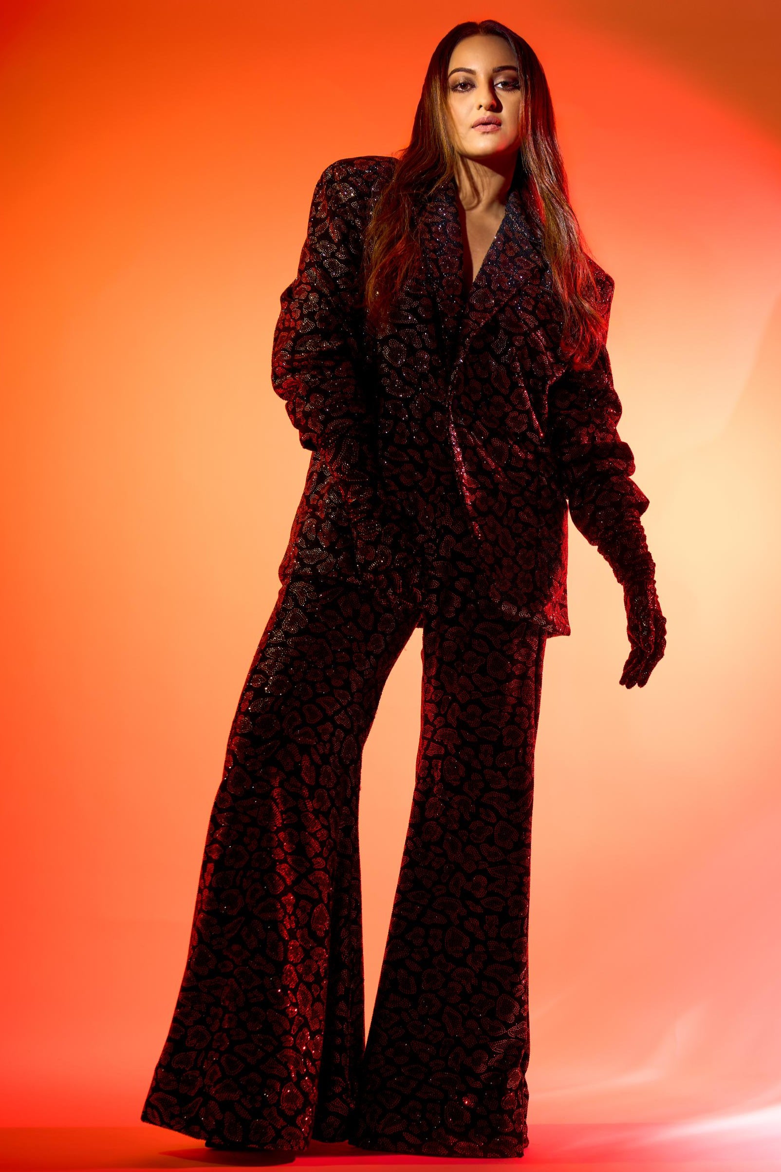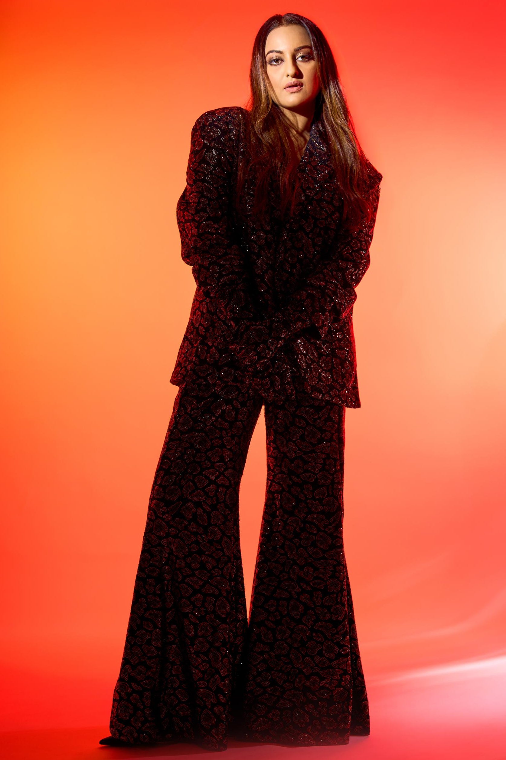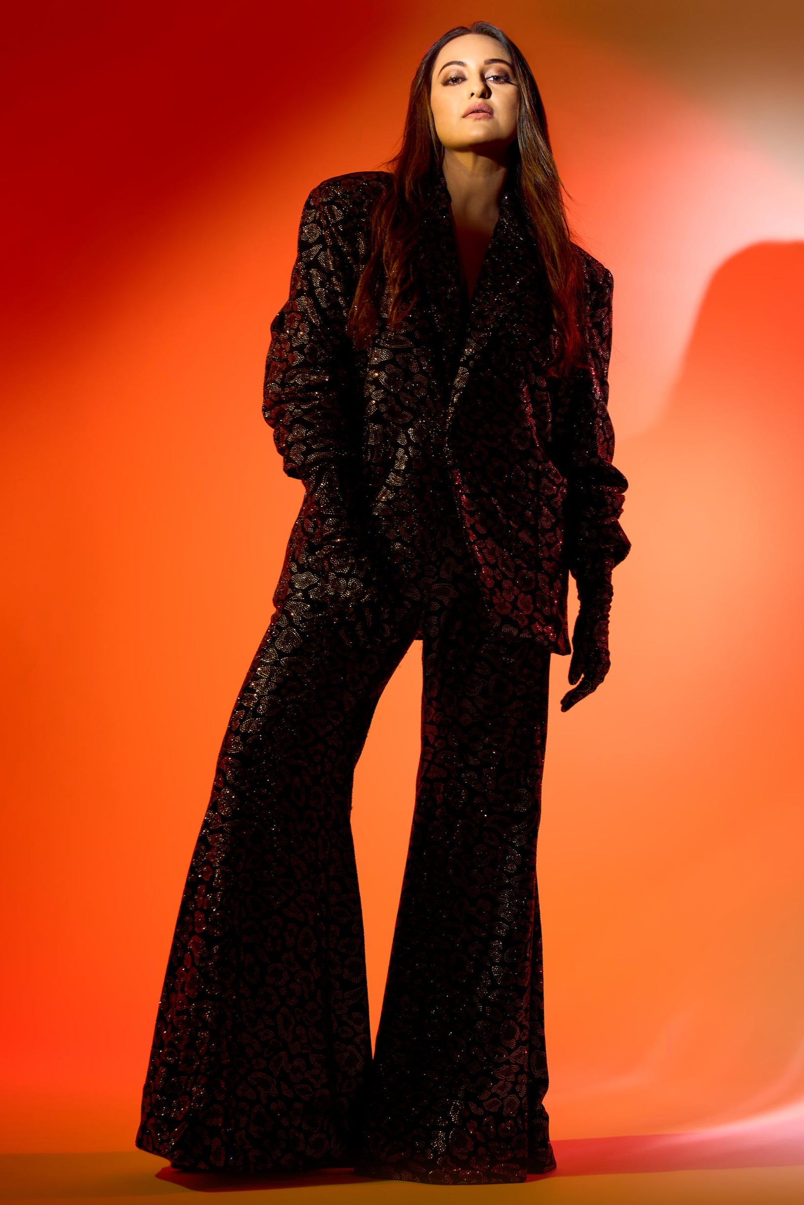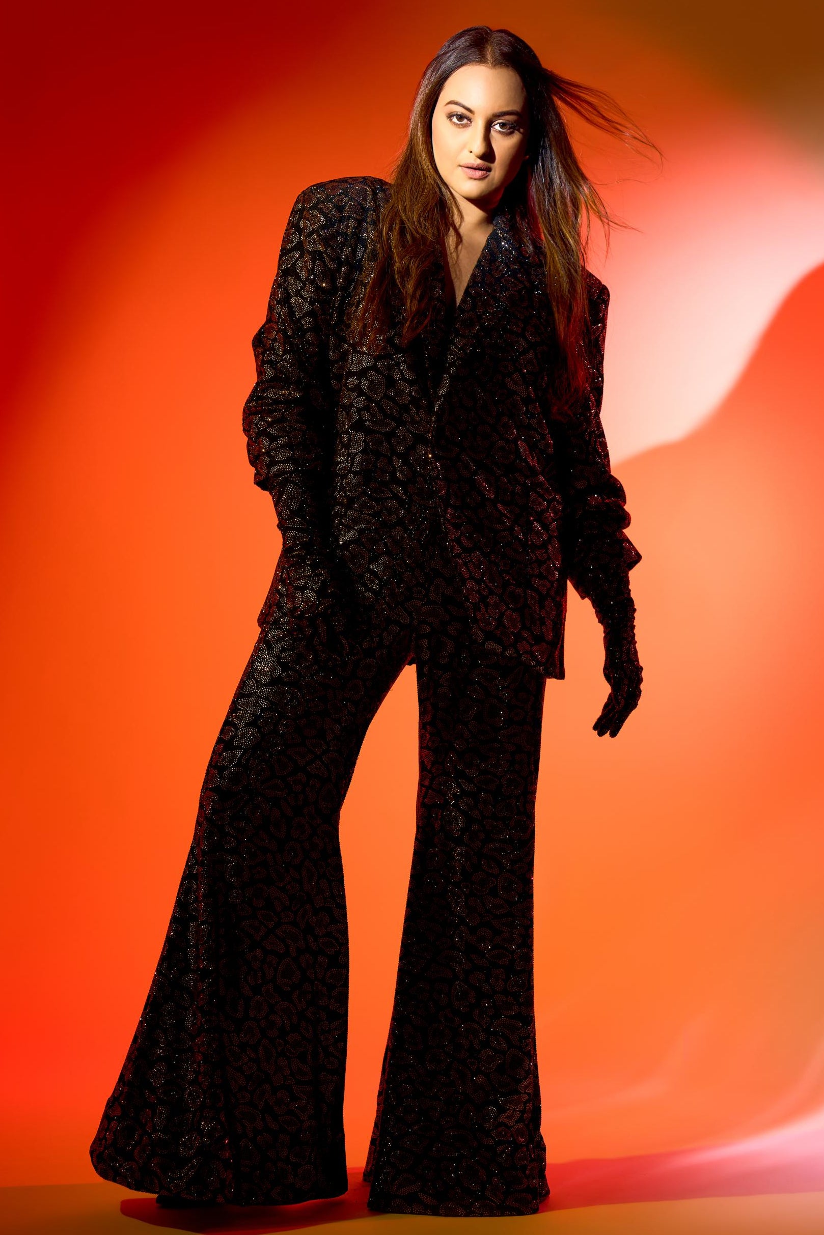 The Boxy Chic B Co-ord Set is a bold and glamorous ensemble featuring a leopard print crystal-embellished jacket and matching pants on a sleek black base. The boxy silhouette adds a modern edgy flair while the crystal detailing infuses the look with sparkle and sophistication. Perfect for fashion-forward events or statement outings this set is designed to turn heads with unapologetic style.