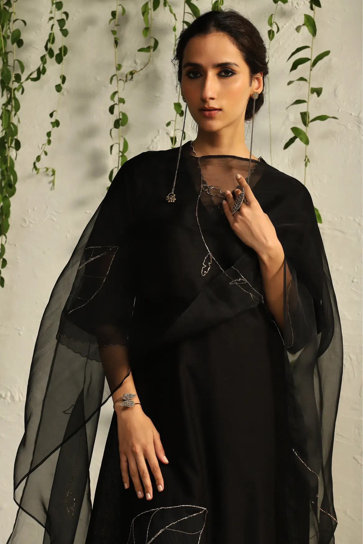 Step into sophistication with our Black Chanderi Straight Kurta Set, a timeless piece that beautifully merges classic elegance with contemporary style. Crafted from luxurious Chanderi fabric, this kurta features a rich black hue that exudes confidence and versatility, perfect for any occasion. The straight silhouette offers a flattering fit, while exquisite detailing adds a touch of refinement. Paired with matching bottoms, this set is ideal for everything from festive gatherings to evening outings.