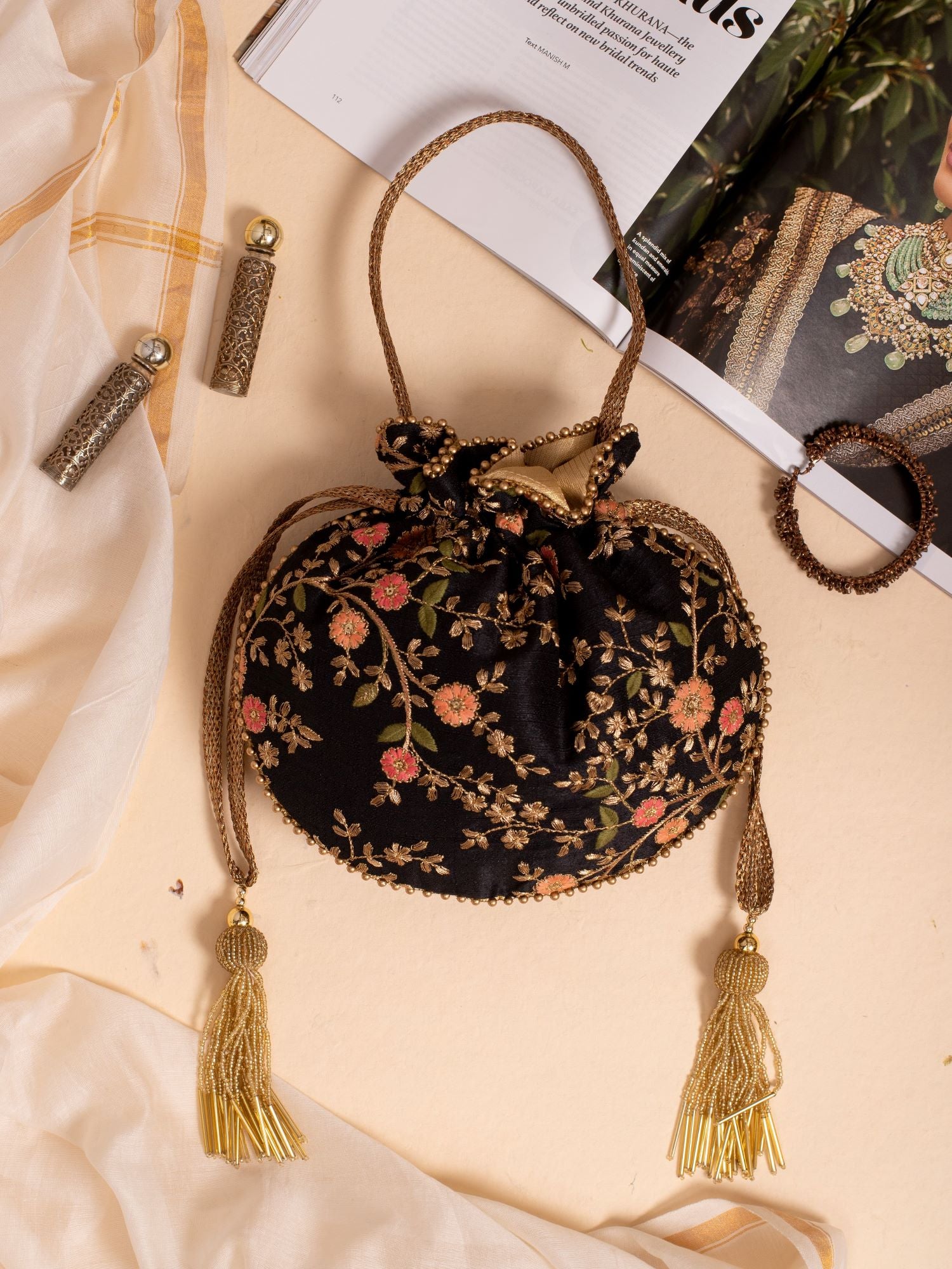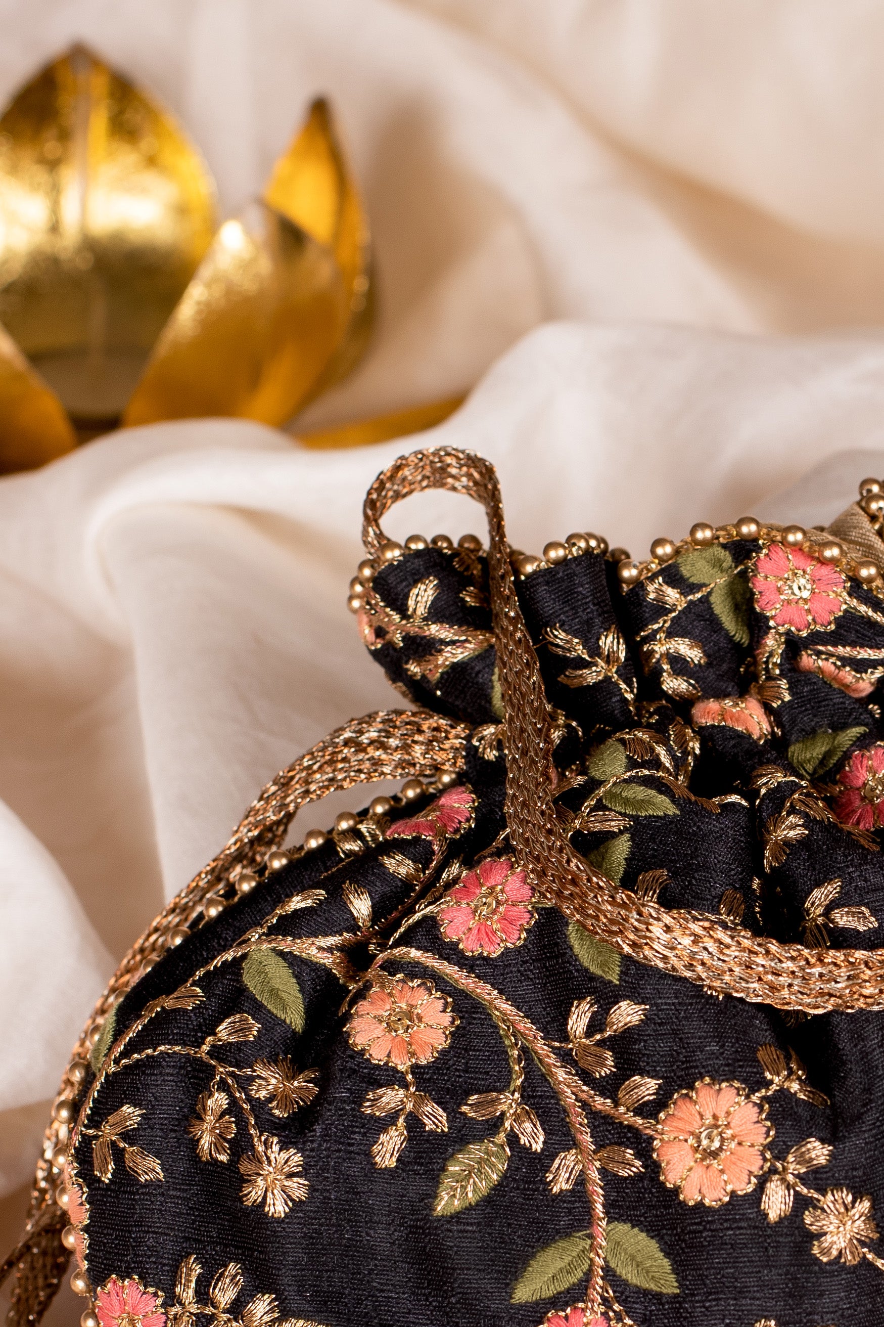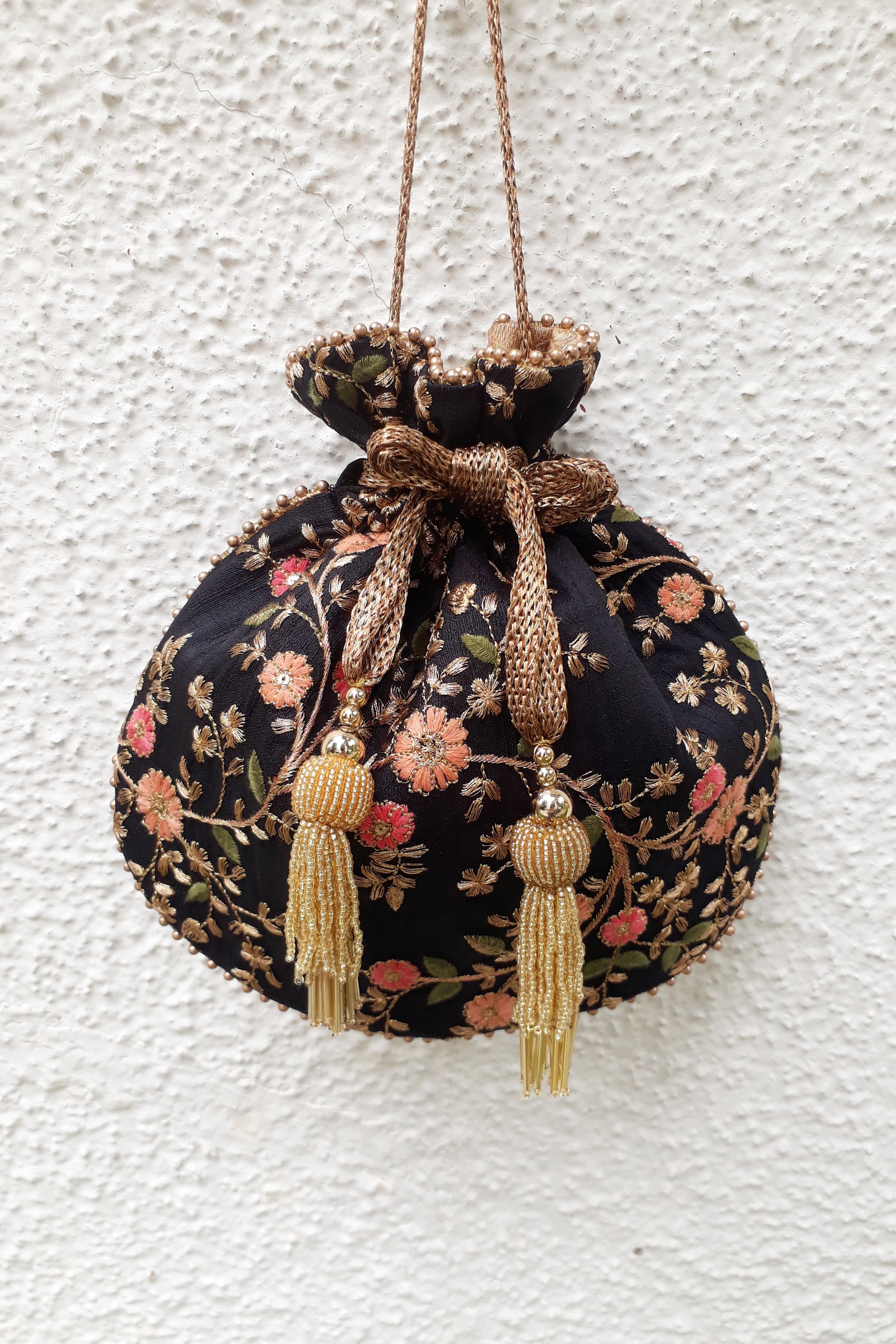 Adorned with delicate pastel floral embroidery and elegant long cutdana tassels, our Floral Creeper Potli is a masterpiece of craftsmanship. Handcrafted with intricate detailing, it features woven golden drawstrings, a soft poly satin lining, and gold beaded piping. Available in multi-hued shades, it's the perfect accessory to complement both traditional and Indo-Western ensembles with effortless grace.