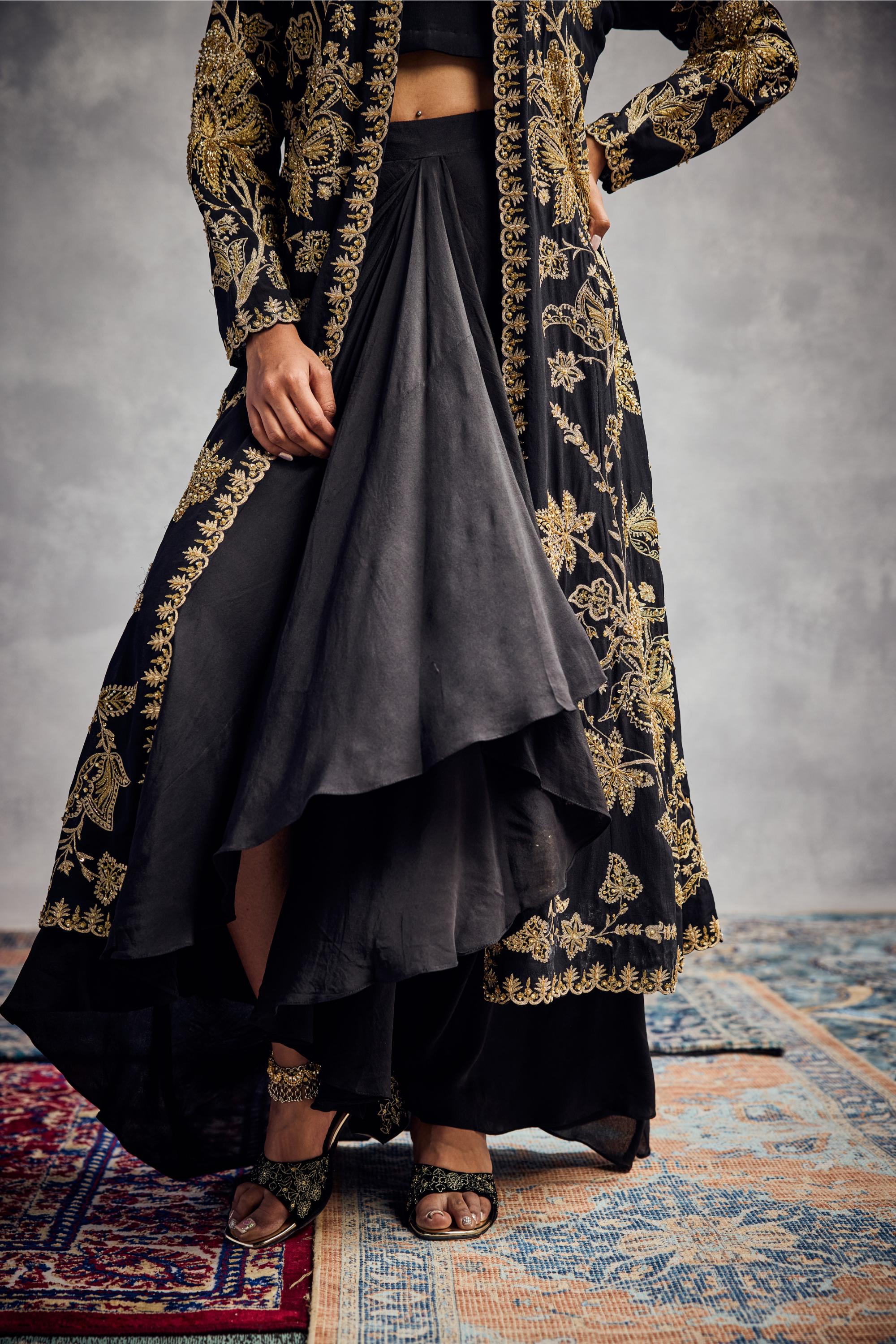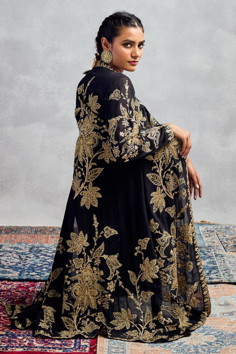 A celebration of heritage and high fashion, the Black Forever Vows Jacket Set with Gold Embroidery is where timeless elegance meets regal drama. Set in classic black and adorned with intricate gold embroidery, this statement ensemble commands attention with every detail. The structured jacket adds a layer of sophistication, making it perfect for wedding receptions, festive galas, or modern ceremonial moments. Luxurious yet grounded in tradition, this set is made for those who believe in love that lasts and style that speaks volumes.