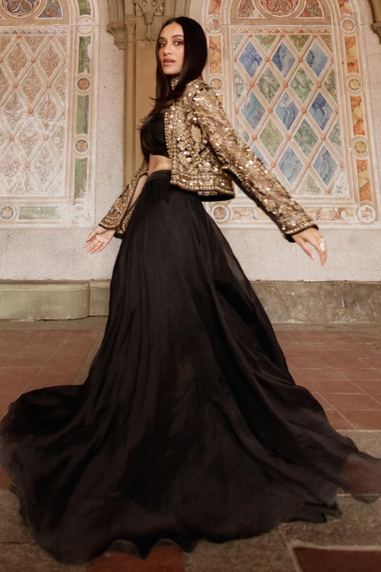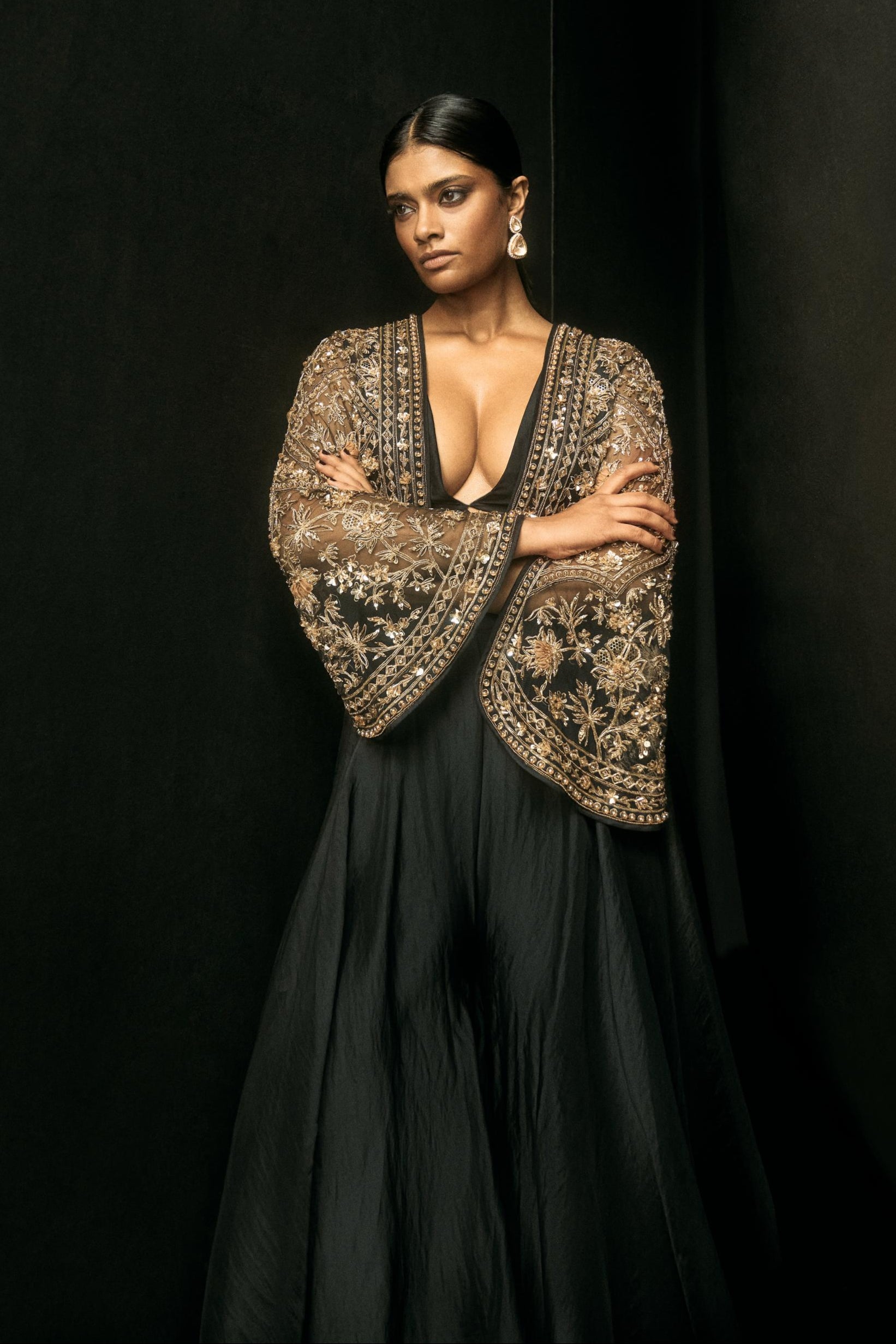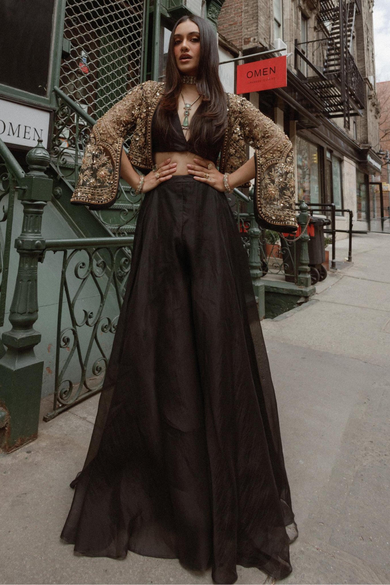 Command attention with the Black Front Row Icon Jacket with Sharara, an ensemble designed to bring runway glamour to your wardrobe. Featuring a structured black jacket paired with elegant sharara pants, this set combines modern tailoring with traditional flair. Perfect for weddings, festive celebrations, and upscale events, the Black Front Row Jacket with Sharara exudes confidence and sophistication. Step into the spotlight and make every occasion unforgettable with this fashion-forward outfit.