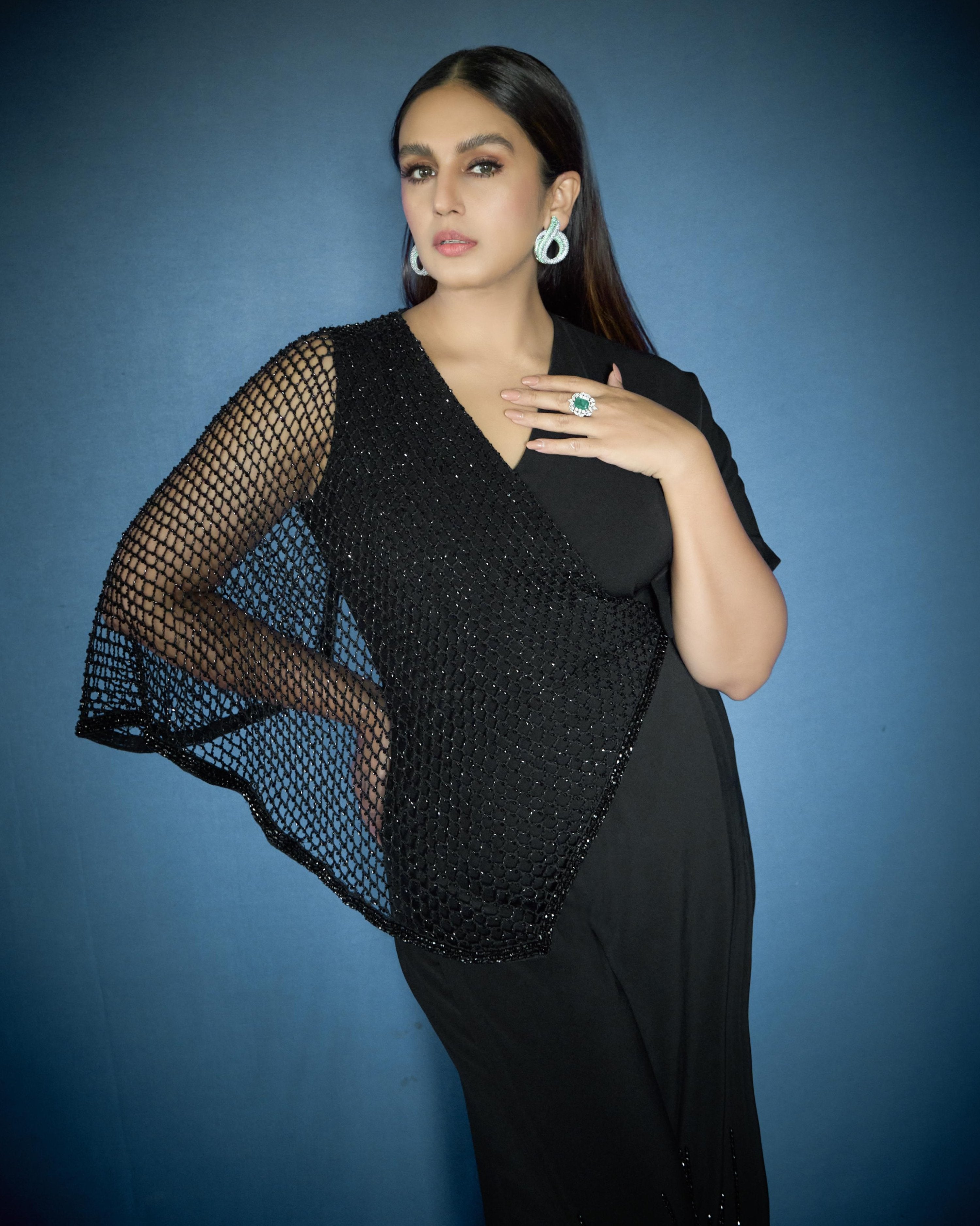 Make a statement in this classy black Italian crepe jumpsuit, designed to impress with its exquisite handmade geometric latticework adorned with shimmering beads and crystals. The sleek silhouette flatters your figure while offering a modern, sophisticated look. Perfect for upscale events or evening outings, this jumpsuit combines elegance with a touch of artistic flair, ensuring you stand out in style.