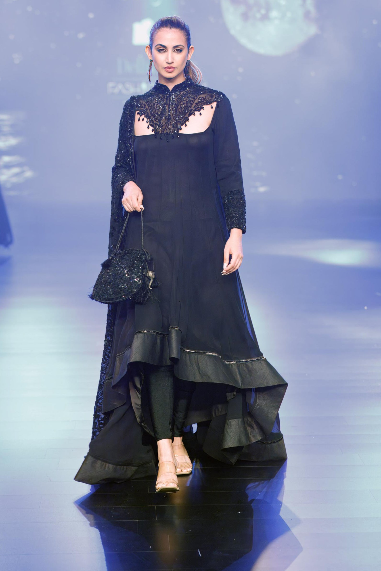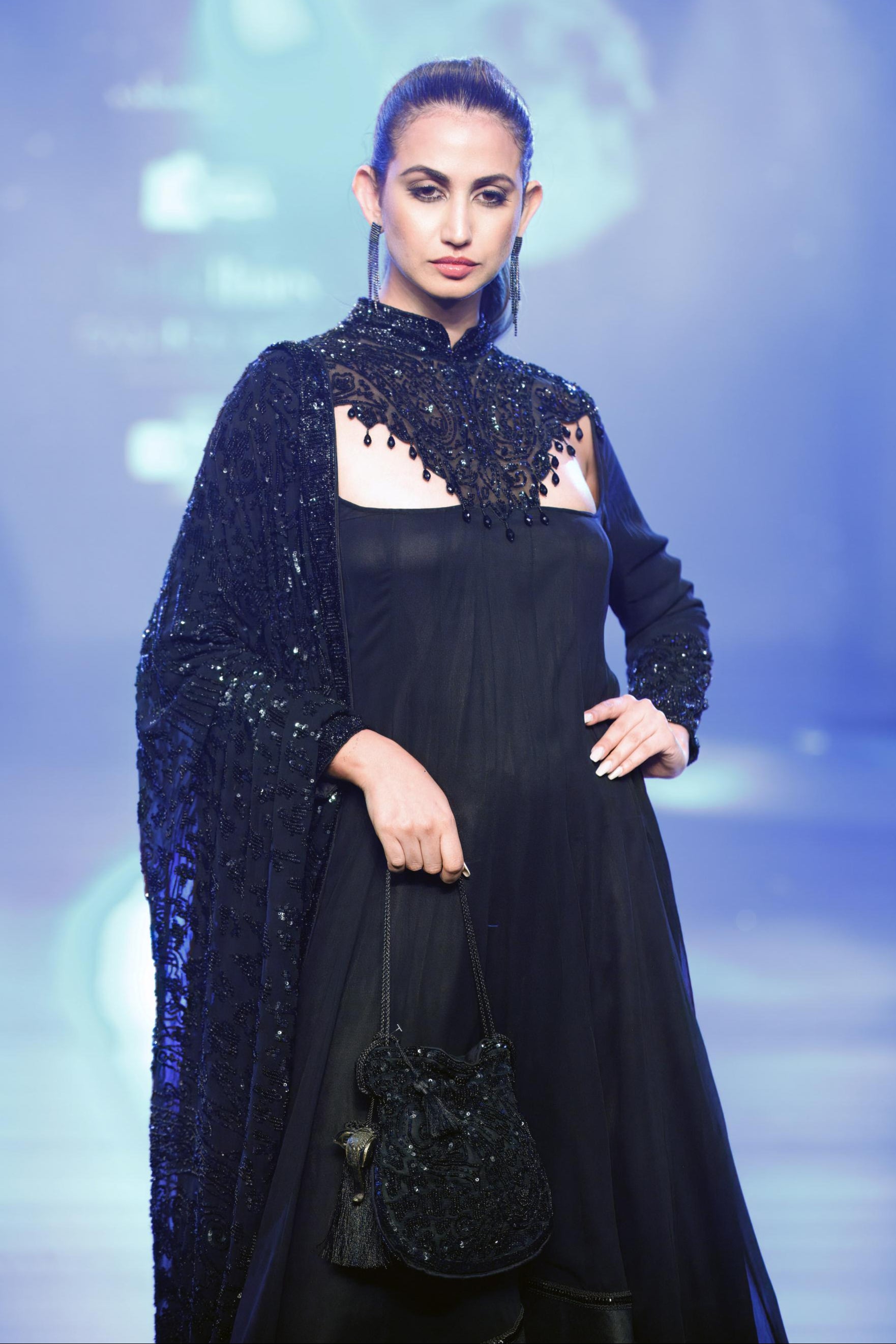 The Black G-60 Kalidar Long Carpet Kurta Set is a regal and statement-making ensemble. The kurta features a luxurious, voluminous kalidar design that creates a stunning silhouette, complemented by full handwork on the fabric. Paired with a beautifully crafted A.P Jaal Dupatta, featuring intricate hand embroidery, this set exudes opulence. The black hue adds to its timeless appeal, making it perfect for weddings, receptions, or high-end events. This set offers a blend of traditional craftsmanship with a modern, glamorous touch, ensuring you stand out with grace and sophistication.