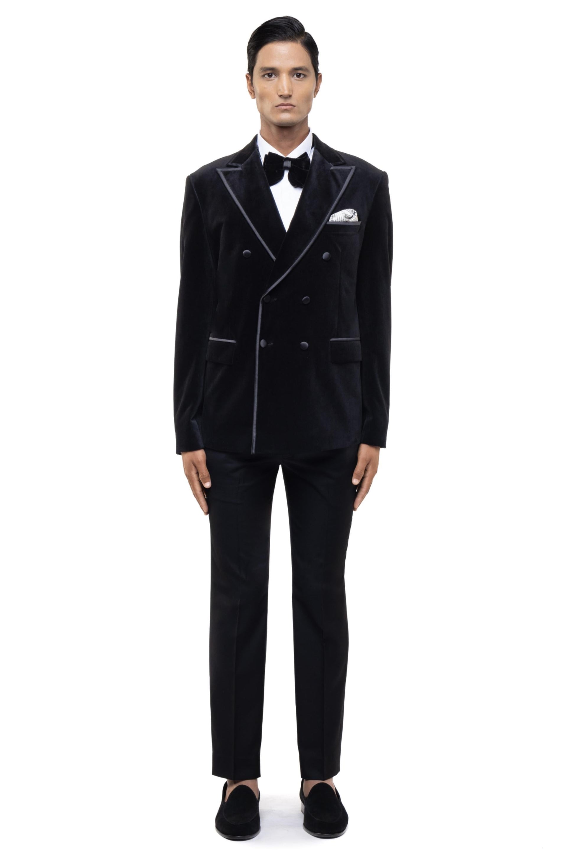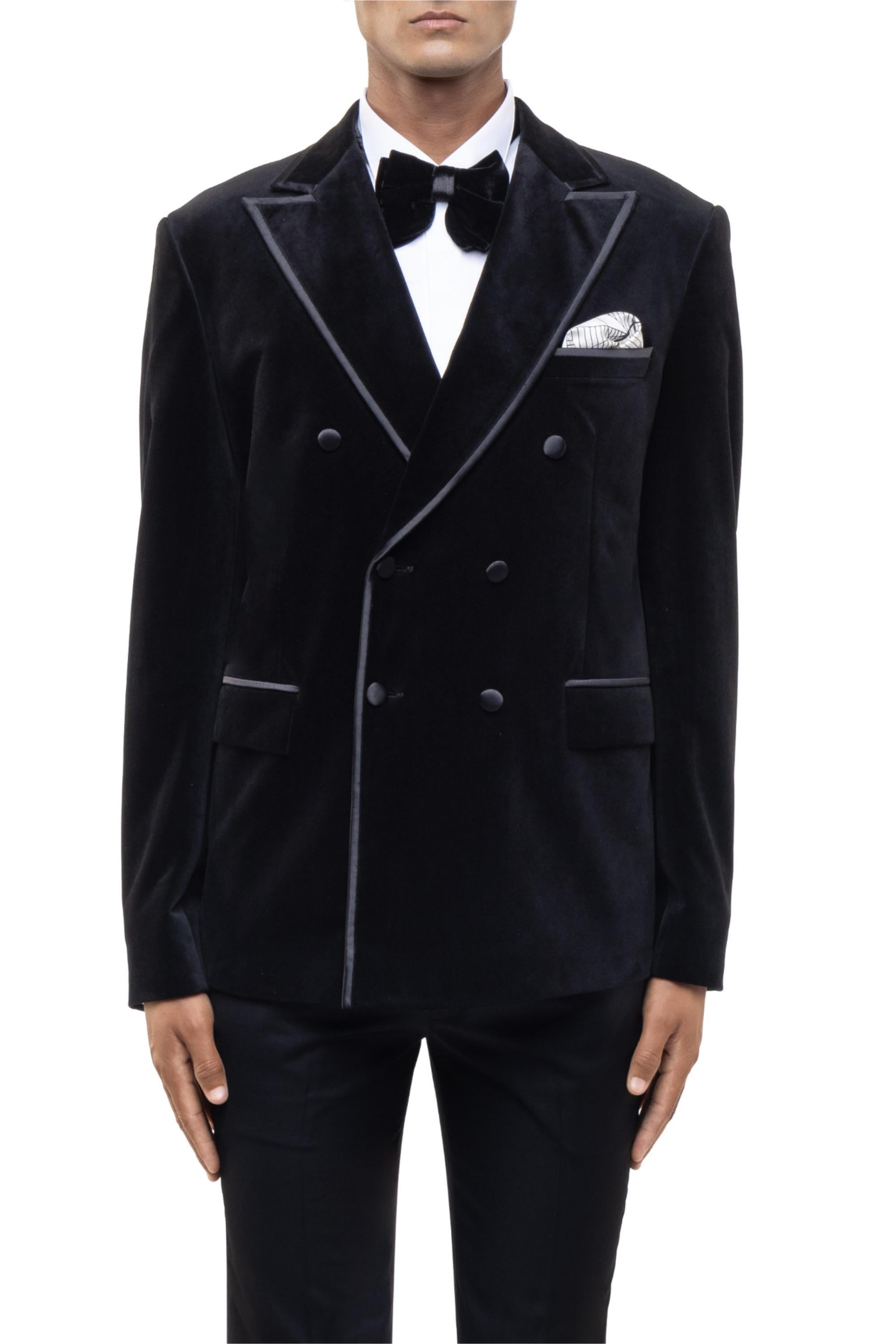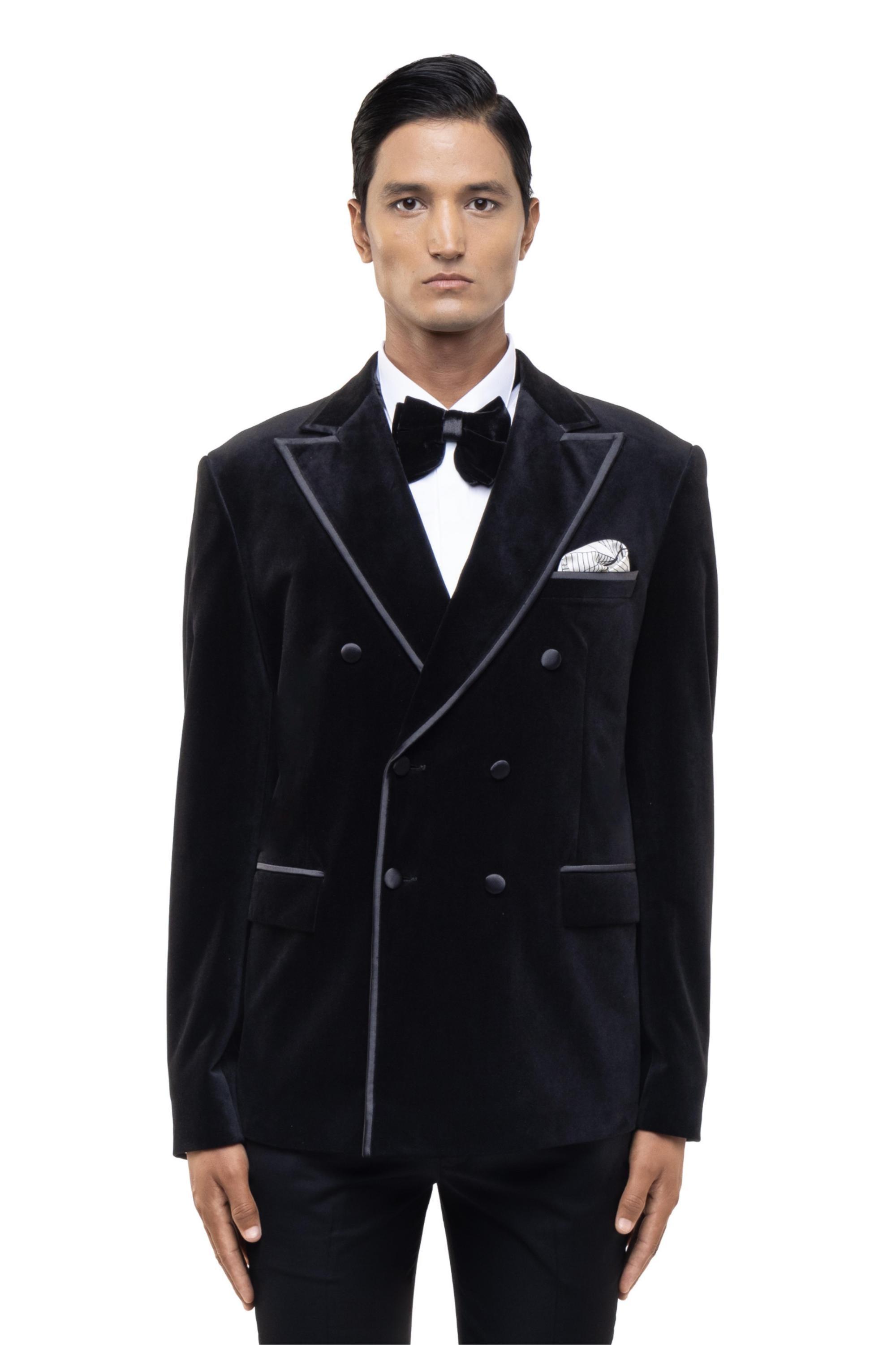 Black peak lapel double breasted tuxedo set