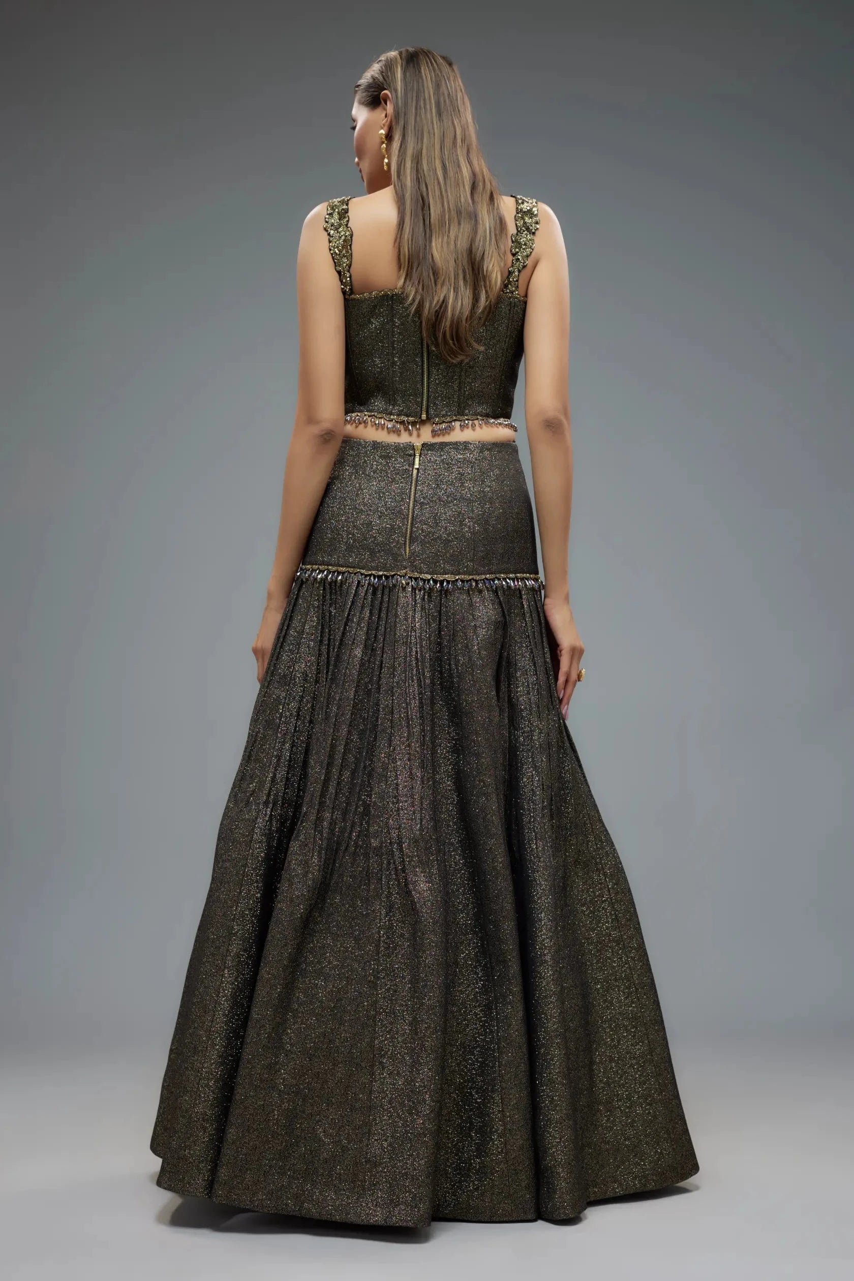 Step into the spotlight with the Black Polylurex Lehenga a modern yet elegant piece that redefines festive fashion. Crafted from premium polylurex fabric this lehenga offers the perfect balance of comfort durability and sophisticated sheen. The rich black hue of the lehenga adds depth making it a versatile choice for weddings receptions or upscale celebrations.